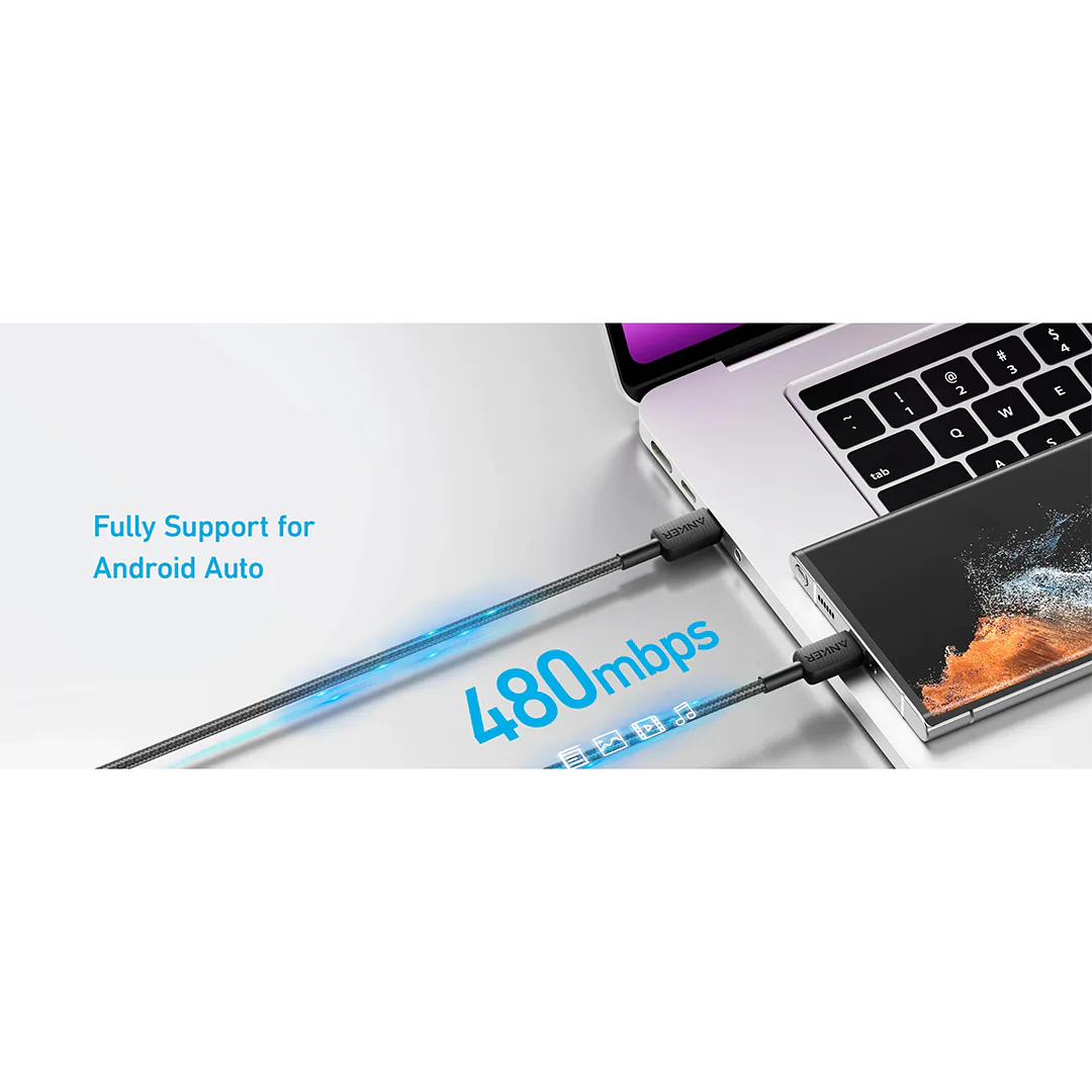 Anker 322 USB-C to USB-C Braided 60W USB-IF 0.9M 3FT Cable A81F5