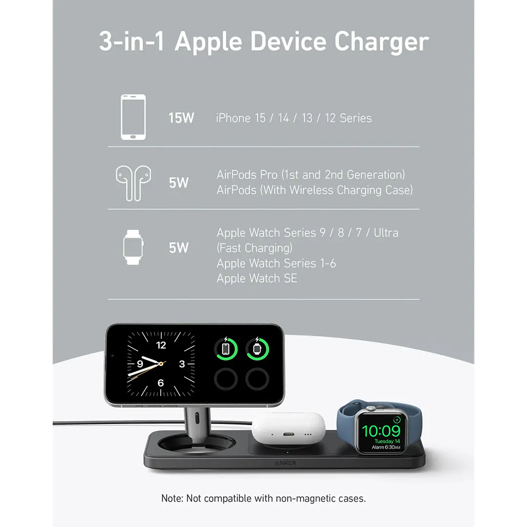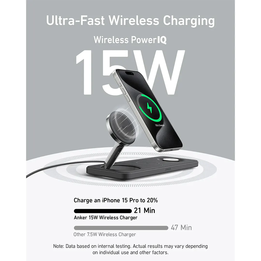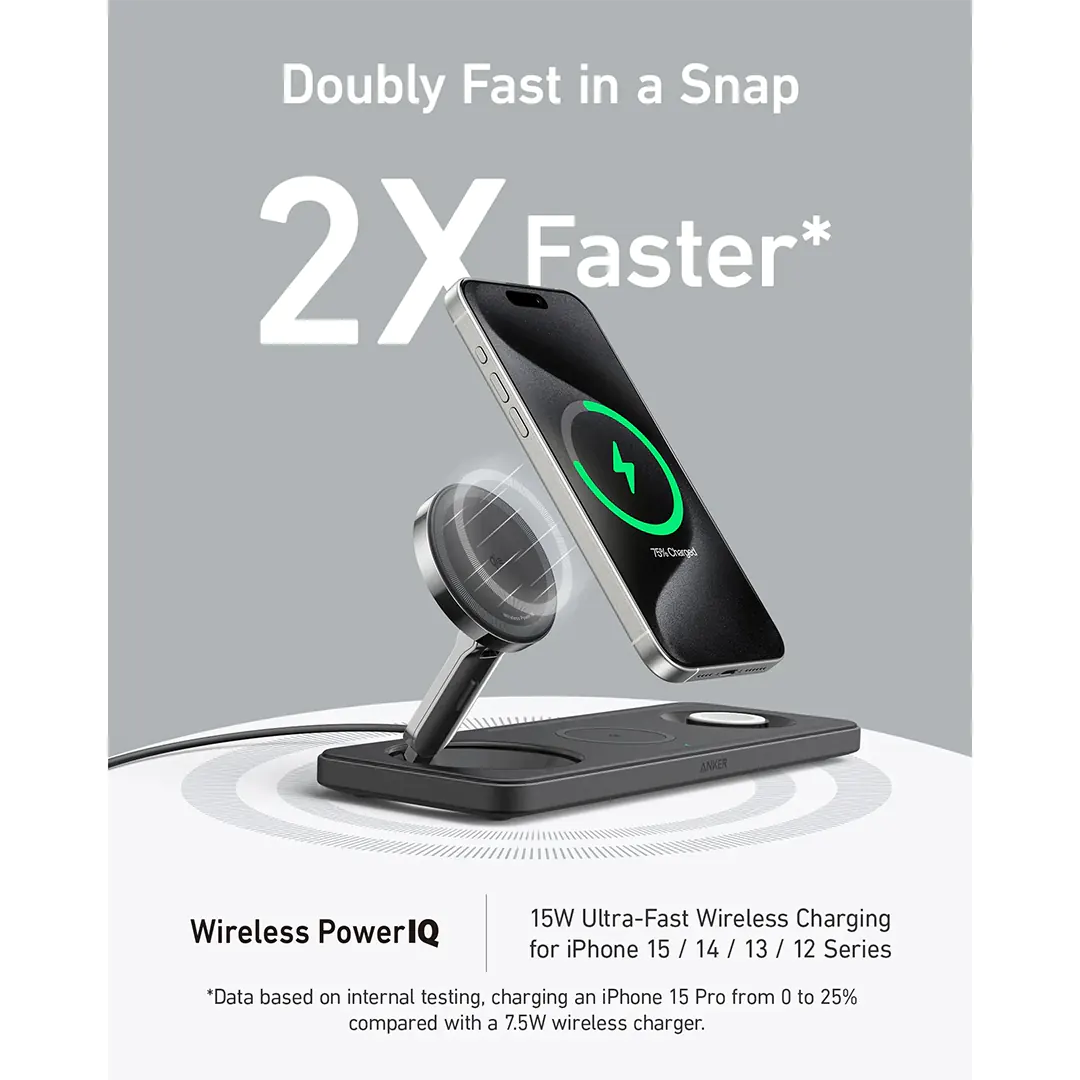 Anker MagGo 3-in-1 Foldable Wireless Charging Station with 40W Adapter & USB-C Cable B25M13