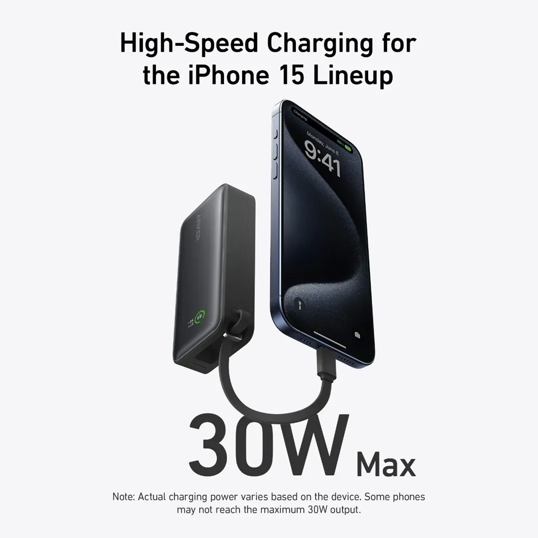 Anker Nano 30W Built-In USB-C Cable 10000mAh Power Bank A1259