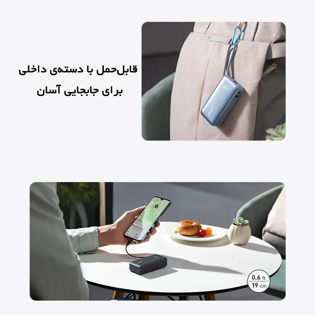 پاوربانک انکر 30 وات با کابل تایپ سی ظرفیت 10000 میلی آمپر ساعت Anker Nano A1259