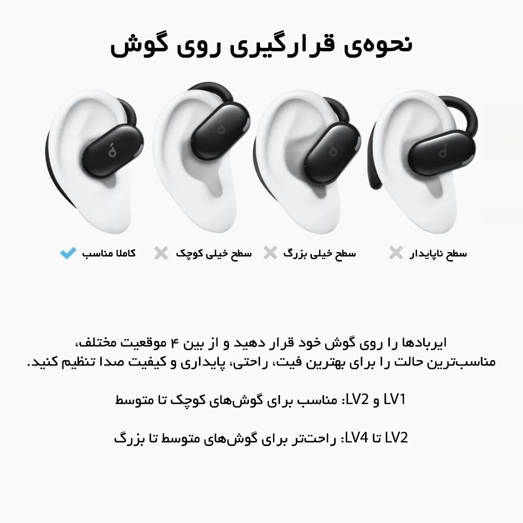 - طراحی به صورت Open-Ear فوق سبک و کاملا سازگار با ارگونومی گوش