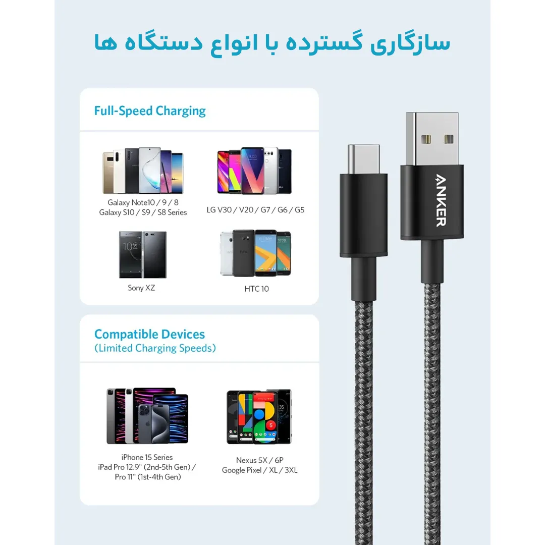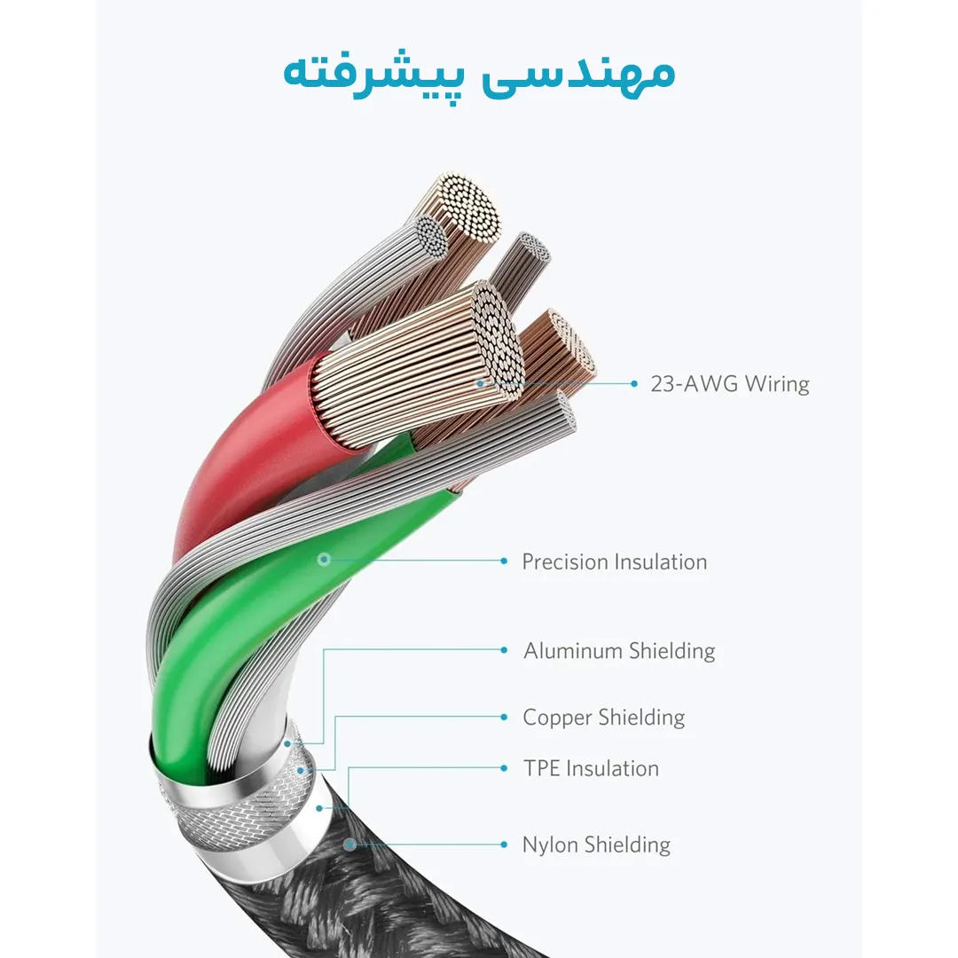 کابل شارژ تایپ سی با کارپلی آیفون انکر مدل Anker USB-C A8173H11 طول 1.8 متر
