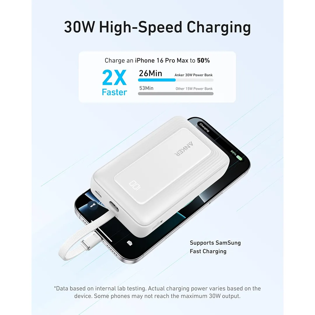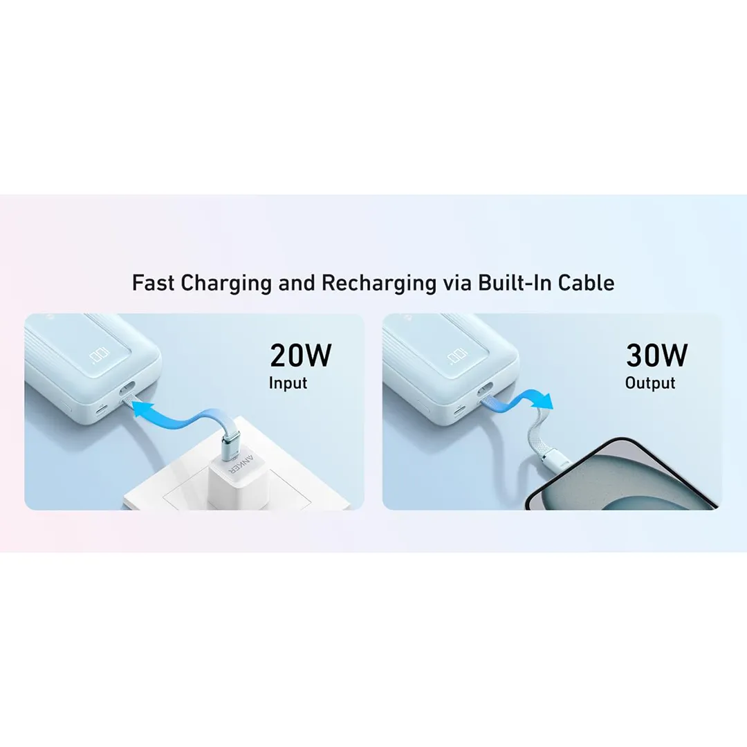 Anker Zolo 30W Built-In USB-C Cable 20000mAh Power Bank A1689
