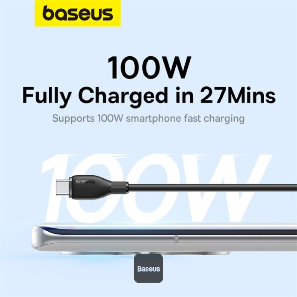 کابل یو اس بی به تایپ سی 100 وات 6 آمپر سوپر فست شارژ بیسوس Baseus Pudding Series 100W 6A USB-A To USB-C طول 1.2 متر