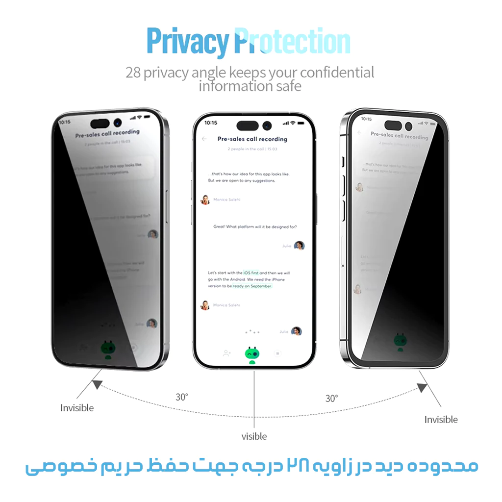 گلس آیفون 16 و آیفون 15 پرایوسی حریم شخصی بلوئو iPhone 15/16