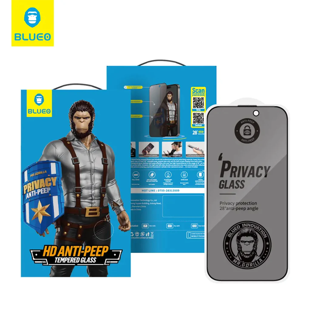 BLUEO 2.5D Anti-PEEP Anti-Spy Privacy 9H HD Tempered Glass Screen Protector For iPhone 16/15