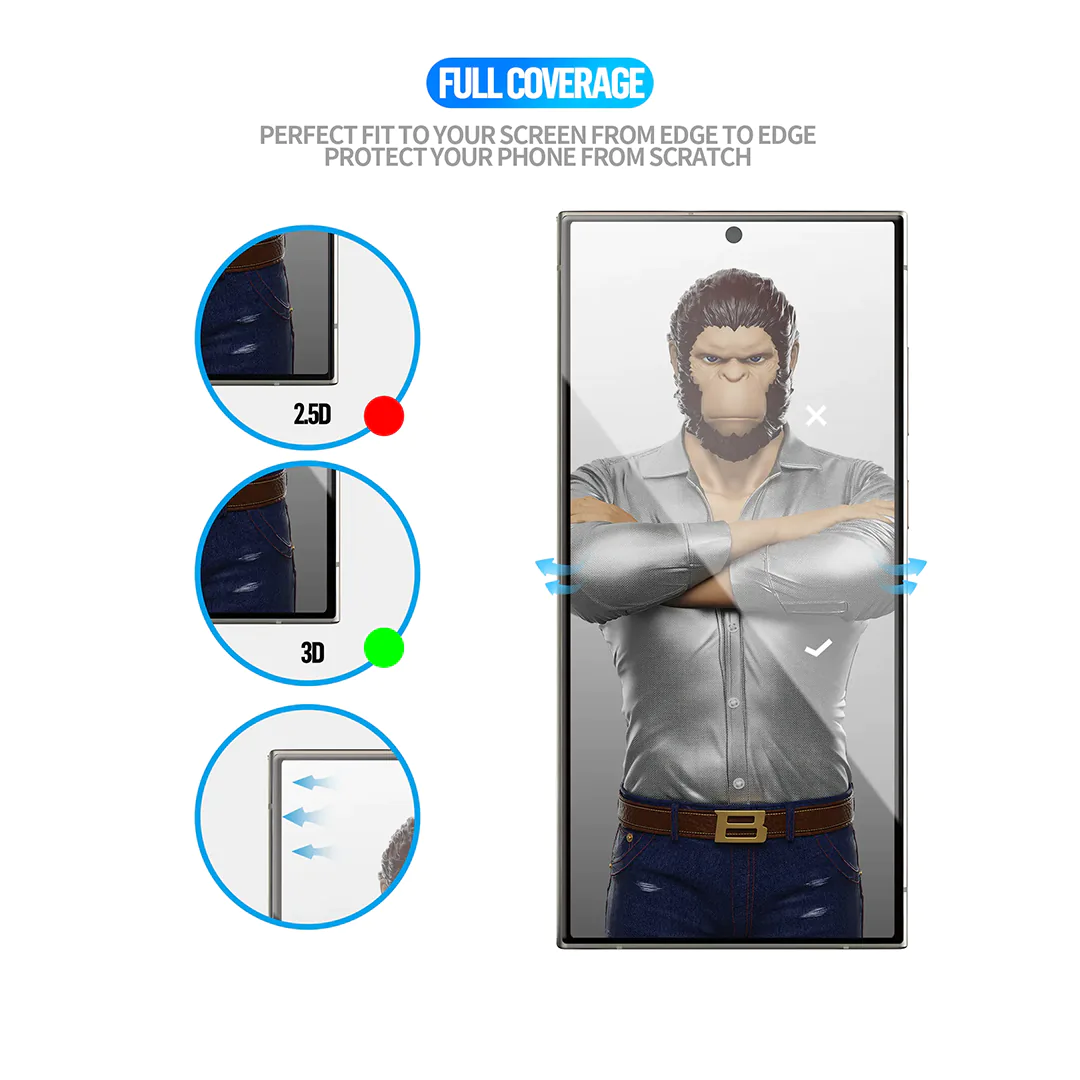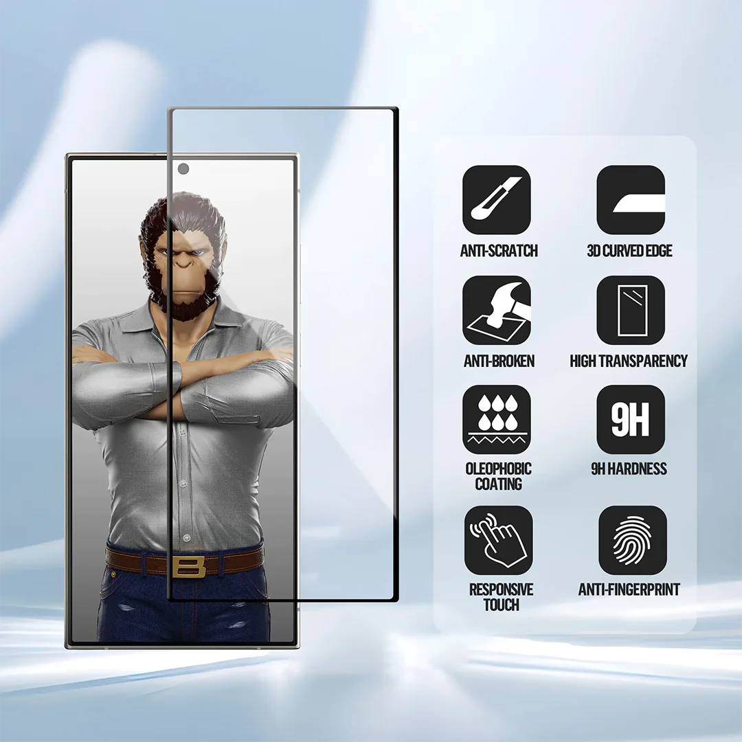 BLUEO Full Glue Curved EDGE 3D 9H HD Full Tempered Glass For Samsung Galaxy S24 Ultra + Locator