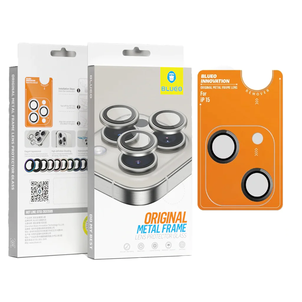 BLUEO Original Metal Frame Camera Lens Glass Ring For Apple iPhone 15/15Plus