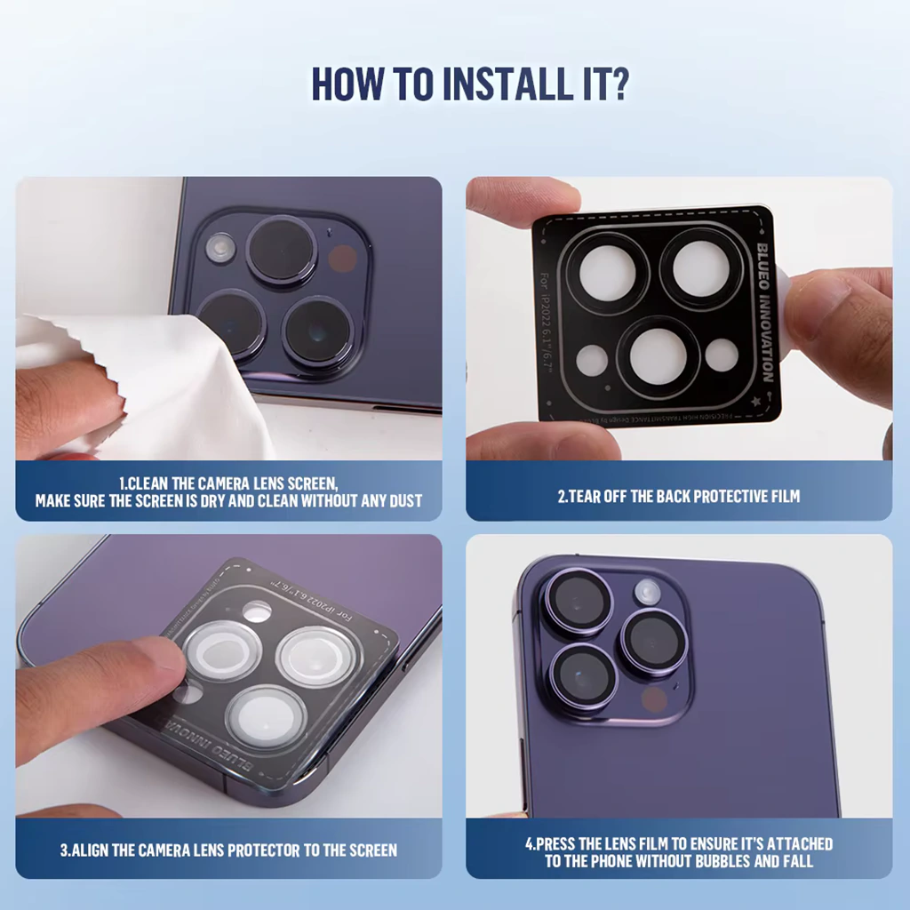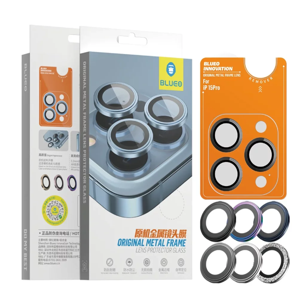 BLUEO Original Metal Frame Camera Lens Glass Ring For Apple iPhone 15/16 Pro& 15/16 Pro Max
