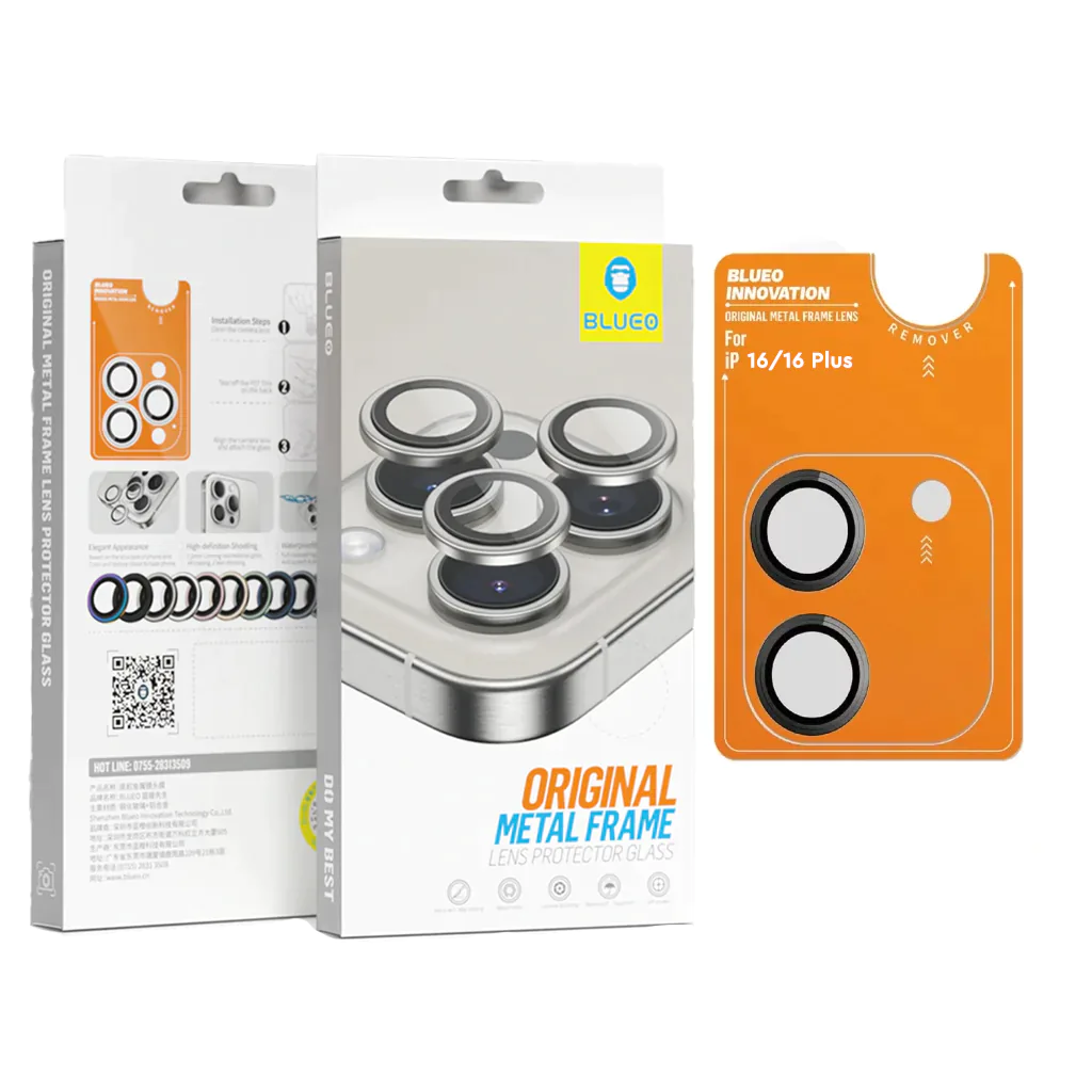 BLUEO Original Metal Frame Camera Lens Glass Ring For Apple iPhone 16/16Plus
