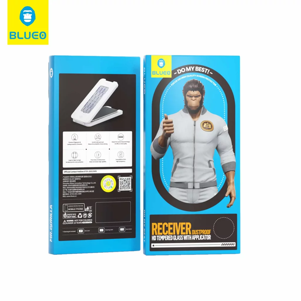 BLUEO Receiver Dustproof Anti-Static 9H HD Tempered Glass Screen Protector For iPhone 16 &15 with Applicator