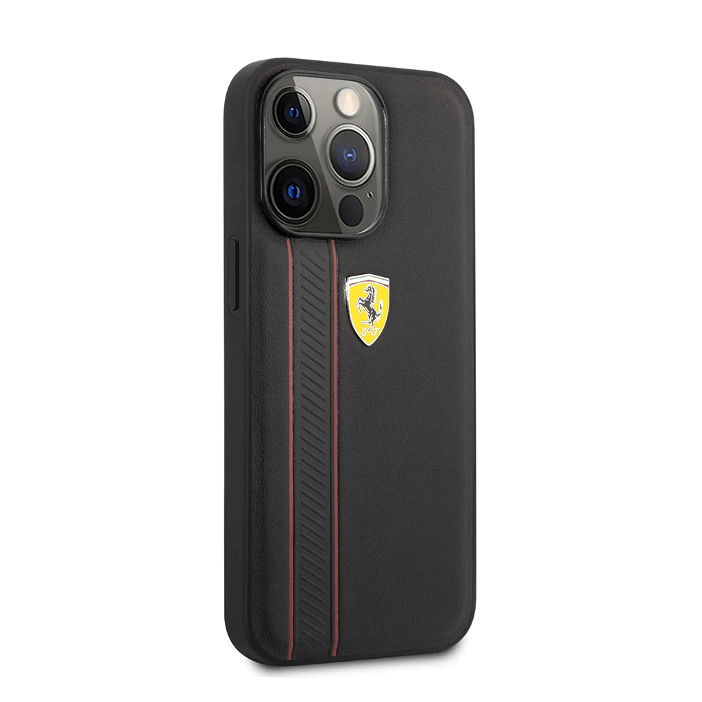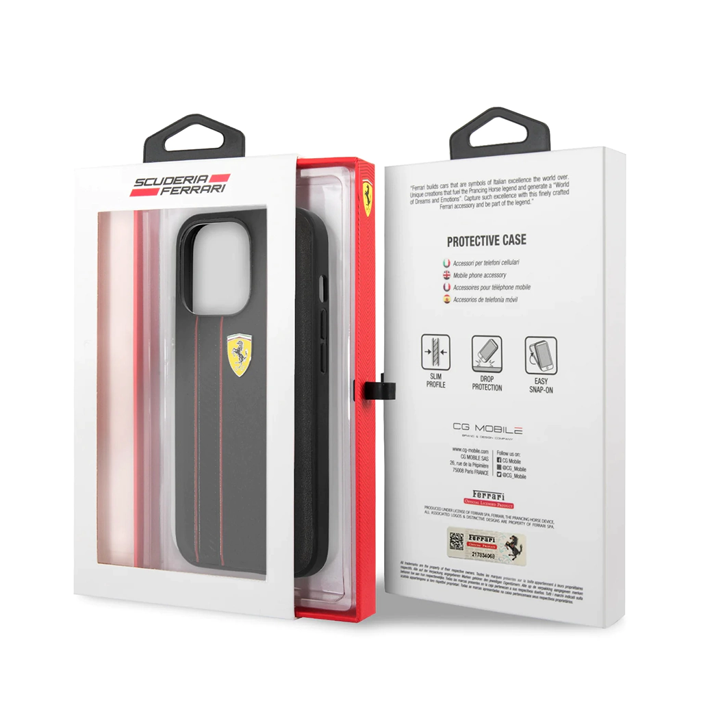 CG Mobile Ferrari Genuine Leather WITH DEBOSSED STRIPES AND RED LINES Case For iPhone 13 Pro Max Original