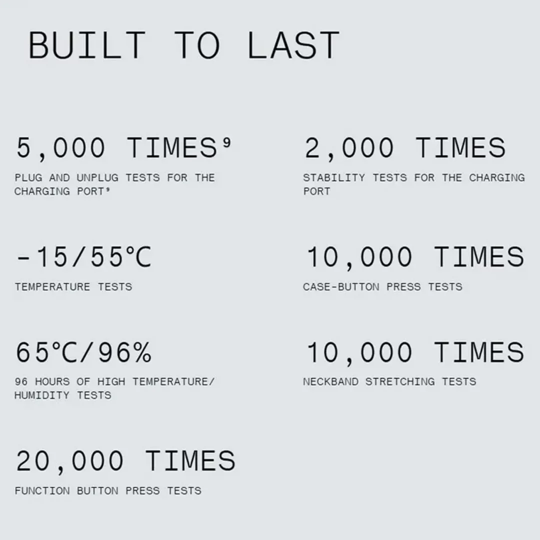 | شارژدهی پخش موسیقی | حداکثر 23 ساعت حالت پخش صدا (روشن بودن حذف نویز) حداکثر 37 ساعت حالت پخش صدا (خاموش بودن حذف نویز) |