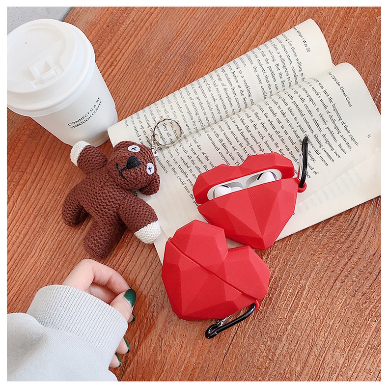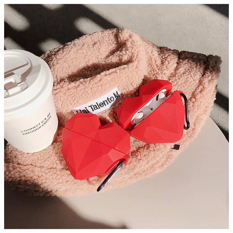 Diamond Red Heart Silicone Protective Case For Apple AirPods 1 & AirPods 2 & AirPods Pro