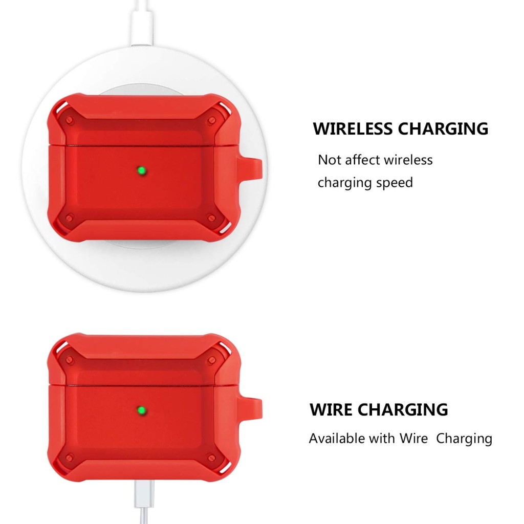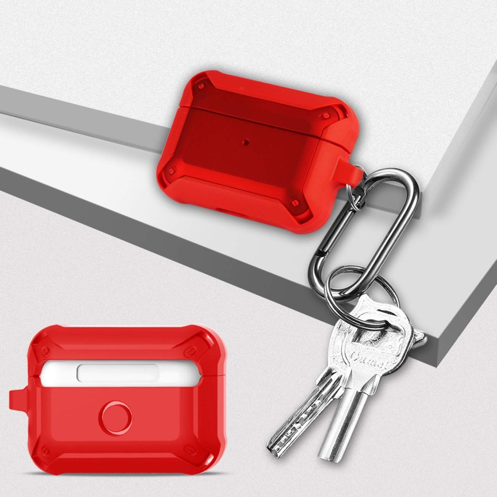 Eggshell Red Tough Armor Shock-Proof Case With Carabiner Ring For Apple AirPods Pro & AirPods Pro 2 Original