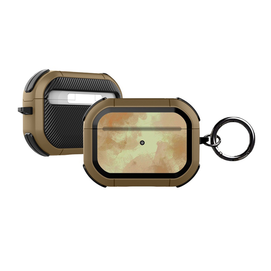 Eggshell Watercolor Brown Shock-Proof Case With Carabiner Ring For Apple AirPods Pro & AirPods Pro 2 Original