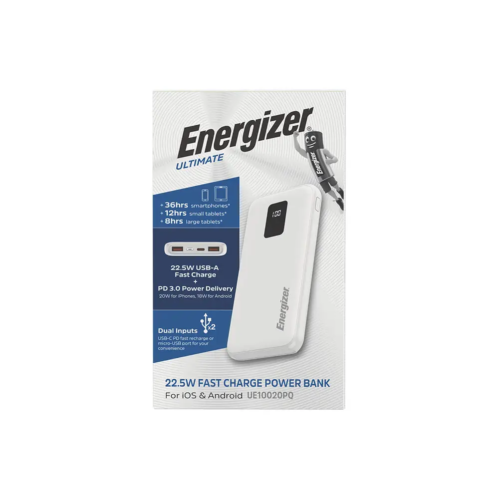 Energizer Type-C PD 20W & USB-A 22.5W 10000mAh 3-output Dual input Charge Power Bank UE10020PQ