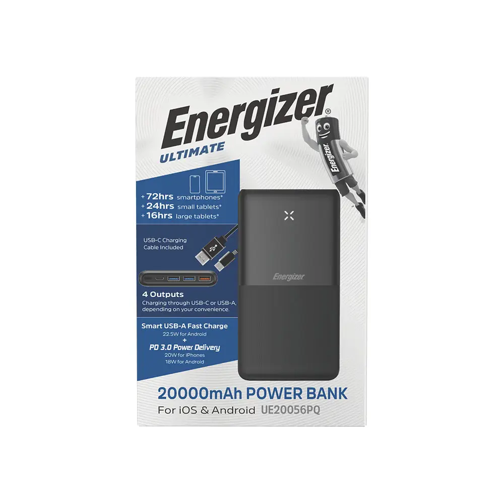 Energizer Type-C PD 20W & USB-A 22.5W 20000mAh 4-Output 3-input Charge Power Bank UE20056PQ