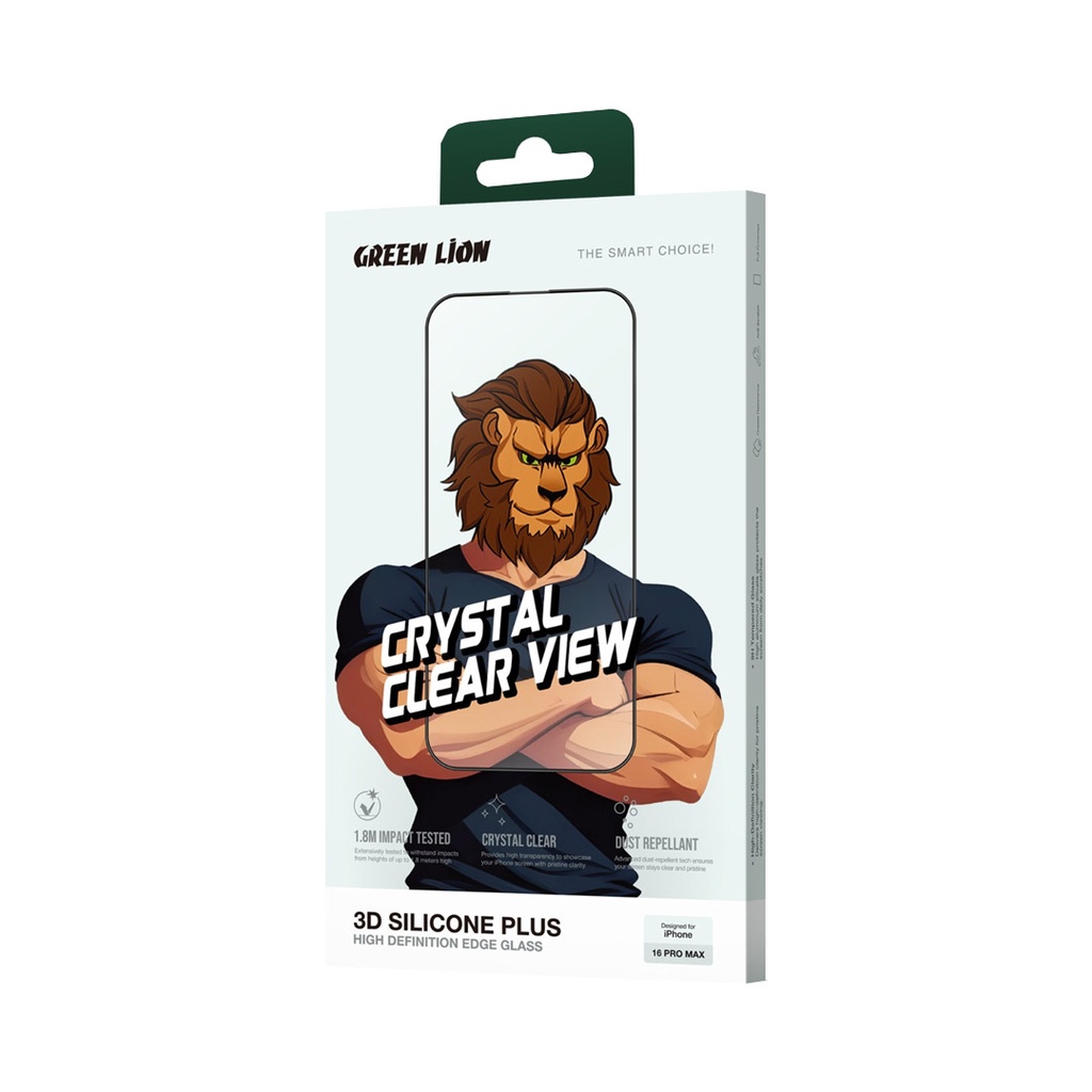 Green Lion 3D Silicone Plus Clear HD Full Glass Screen Protector For iPhone 16 Pro Max