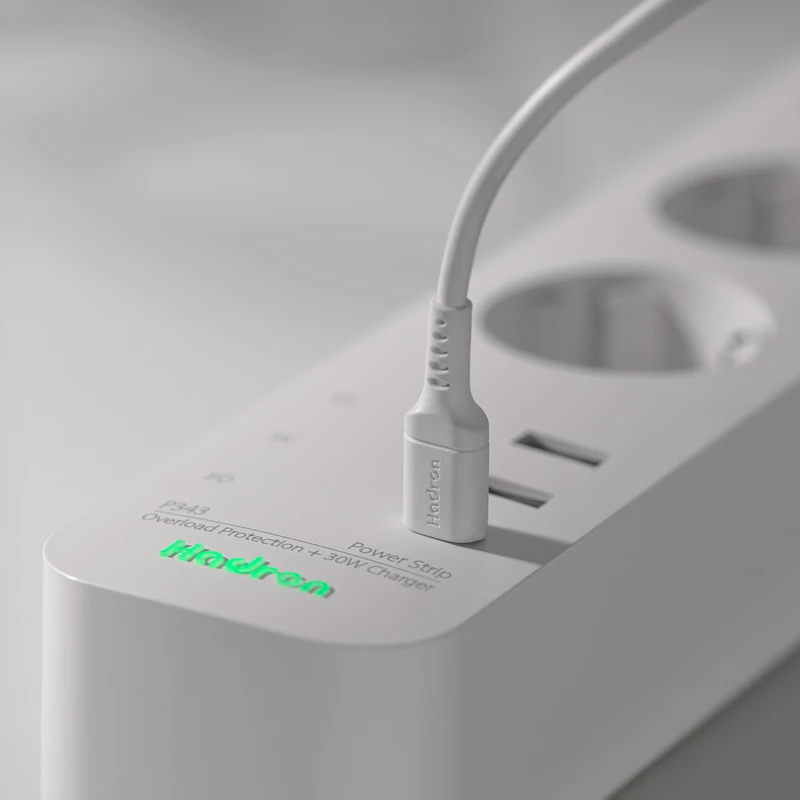 چندراهی هوشمند برق 3 خروجی برق، 1 تایپ سی و 2 یو اس بی (شارژر 30 وات) هادرون مدل Hadron P343 Power Strip + 30W USB Charger