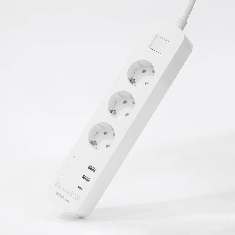 Hadron P343 3 AC Plug & 2xUSB-A 12W & 1xUSB-C 18W USB Charger 10A 2500W MAX 1.8M Cable Power Strip