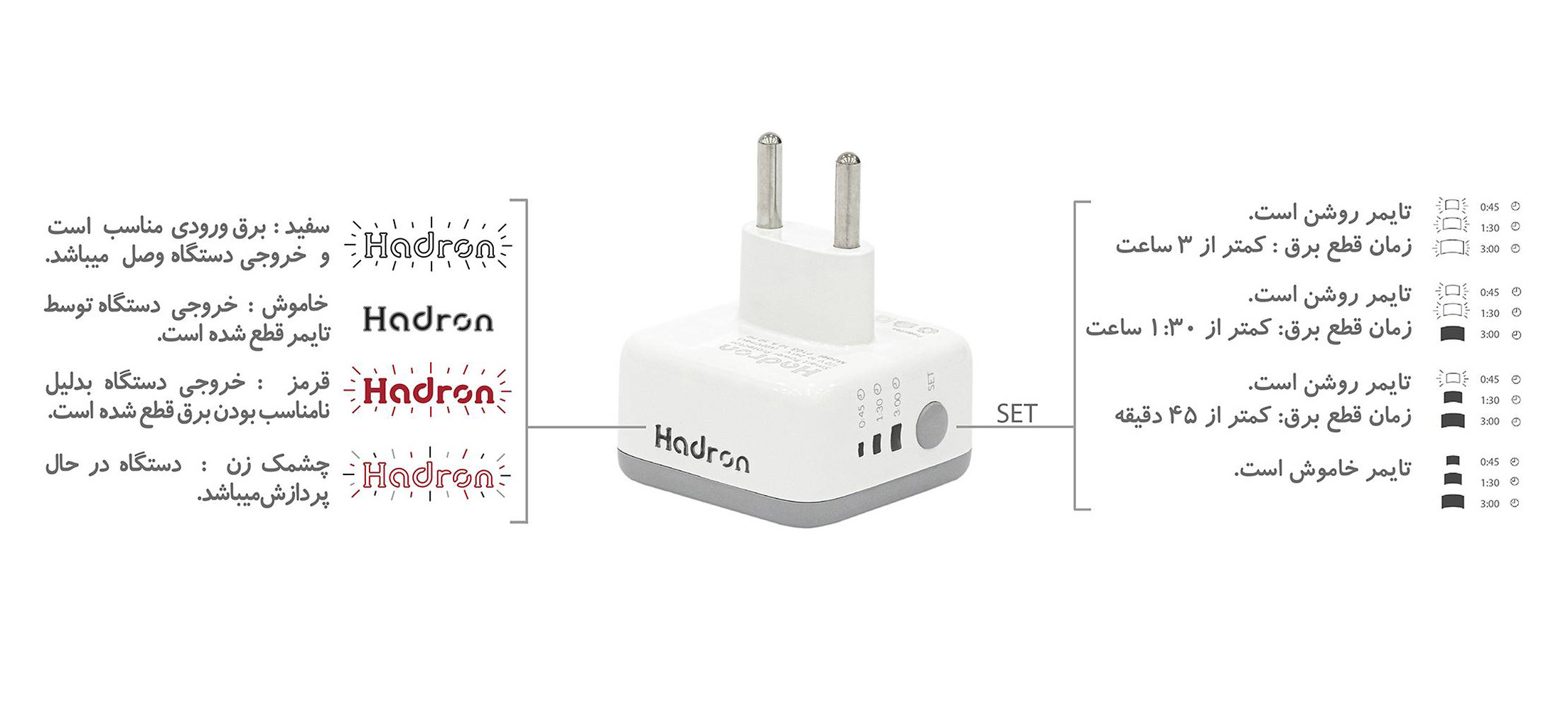 محافظ برق و تبدیل 3 به 2 هوشمند تایمردار هادرون Hadron Smart Power Protector with Timer P103