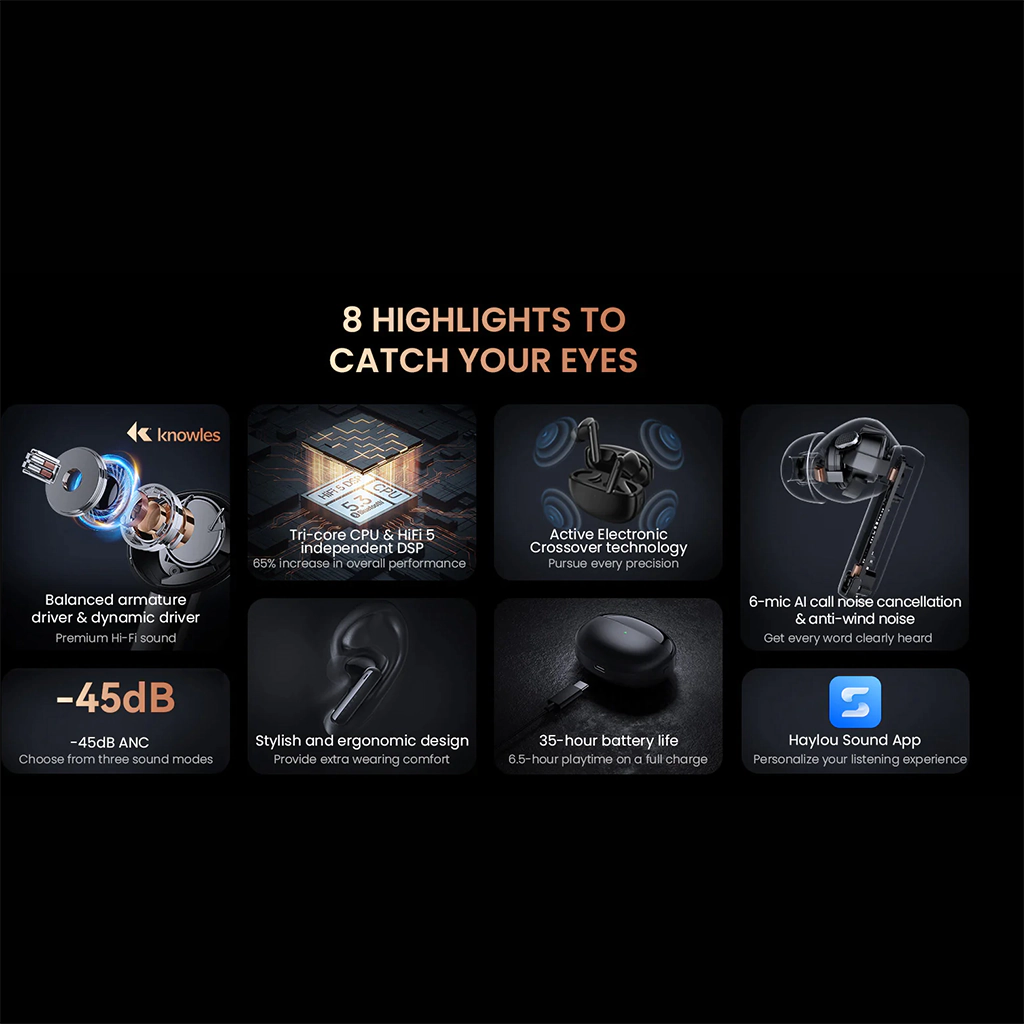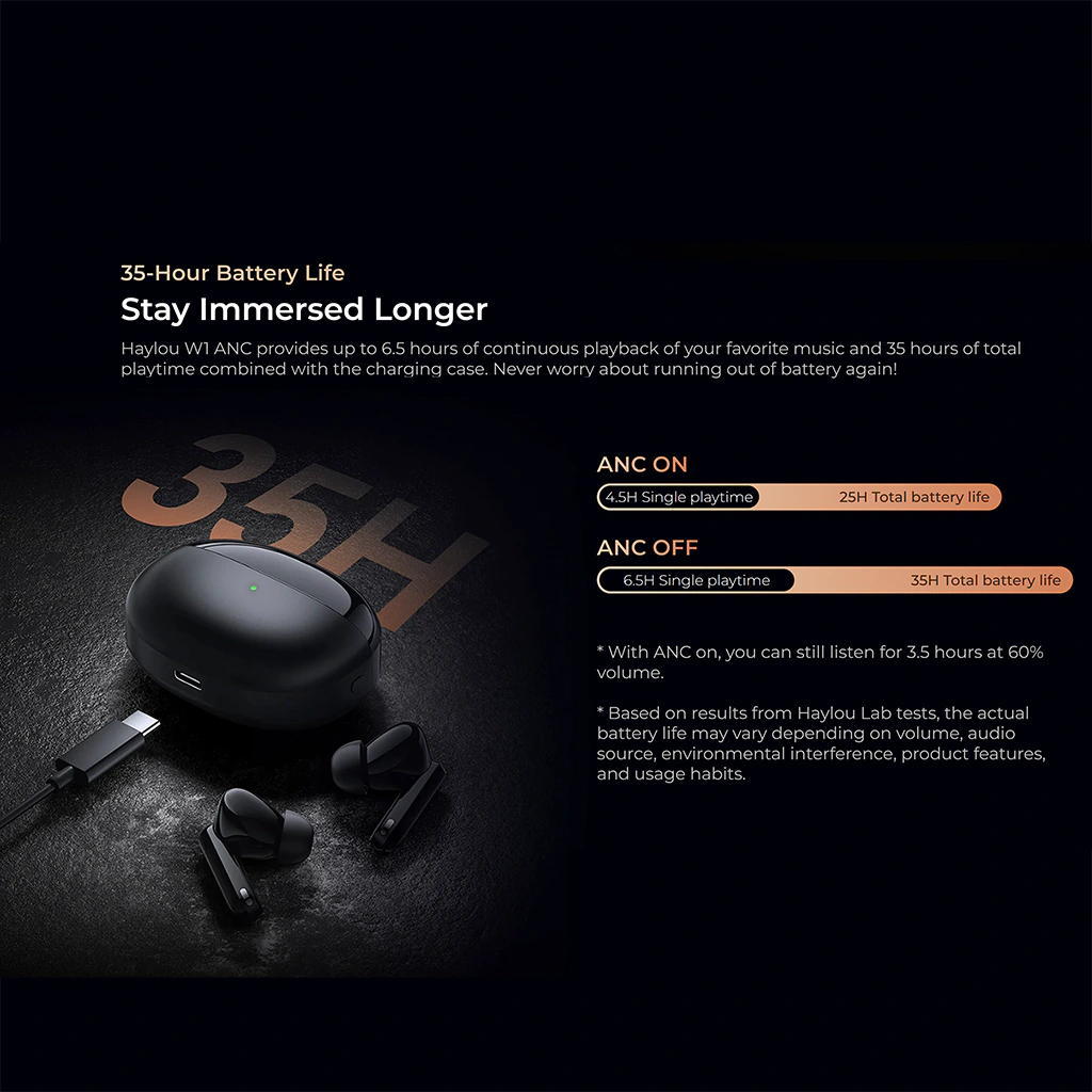 Haylou W1 ANC T007 Hi-Fi Sound Bluetooth 5.3 AI 6-Mic call noise cancellation Earbuds