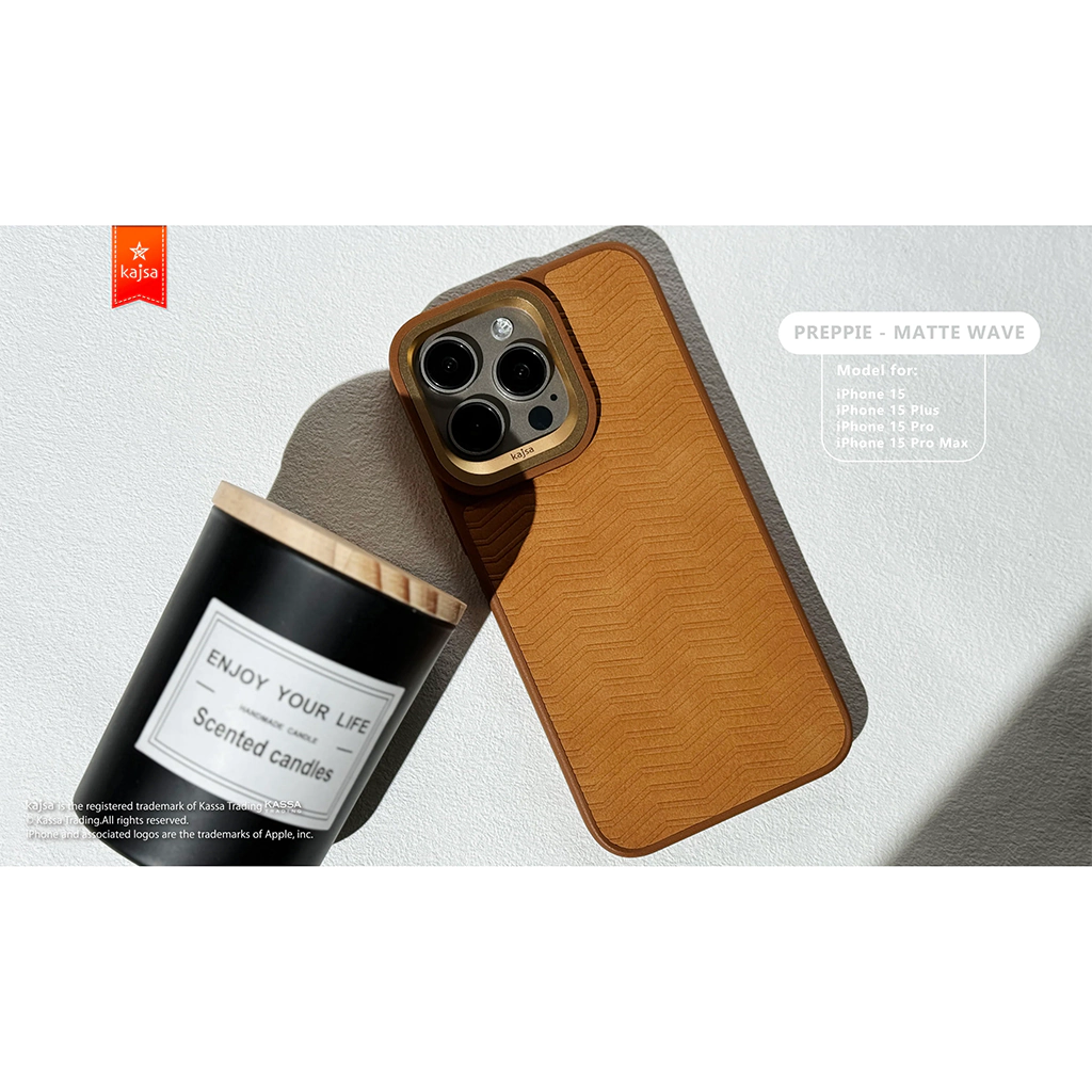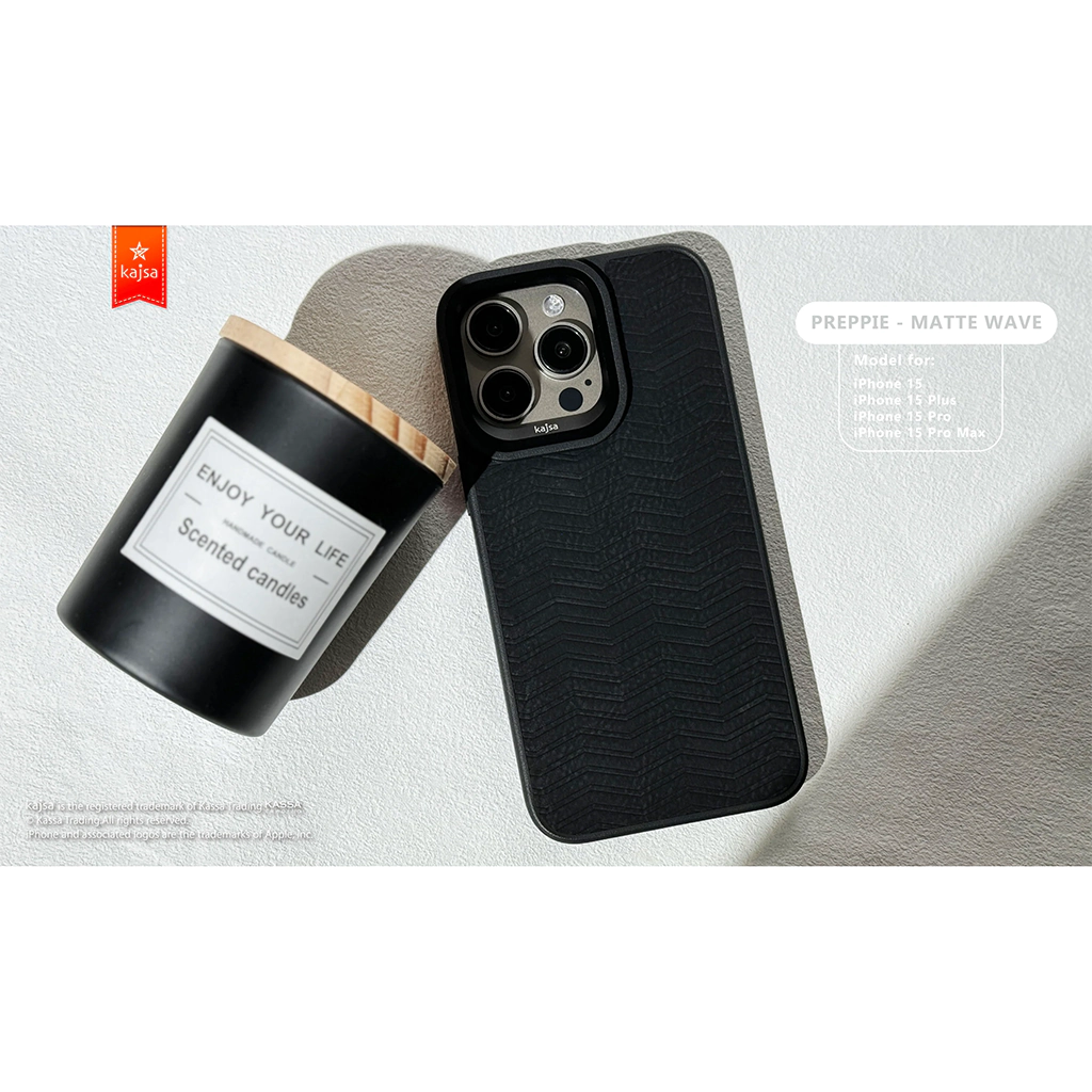 KAJSA Genuine Leather Preppie Collection - Matte Wave Back Case for iPhone 15 Pro Max Original