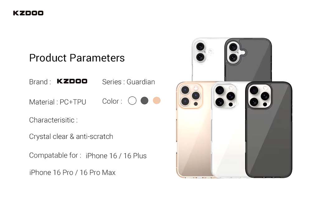 KZDOO (K-DOO) GUARDIAN TPU+PC Ultra-Clear Anti-Shock Transparent Protective Case For iPhone 16 Original