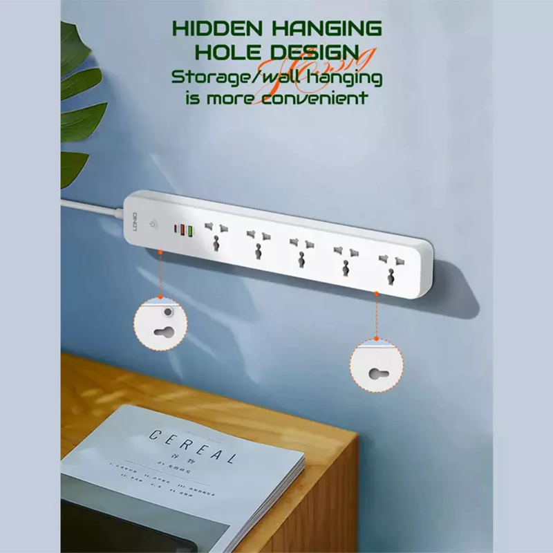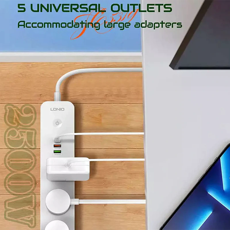 چندراهی برق و شارژر 5 سوکت، 1 عدد تایپسی، 2 عدد یو اس بی الدینیو مدل LDNIO SC5319 2500W