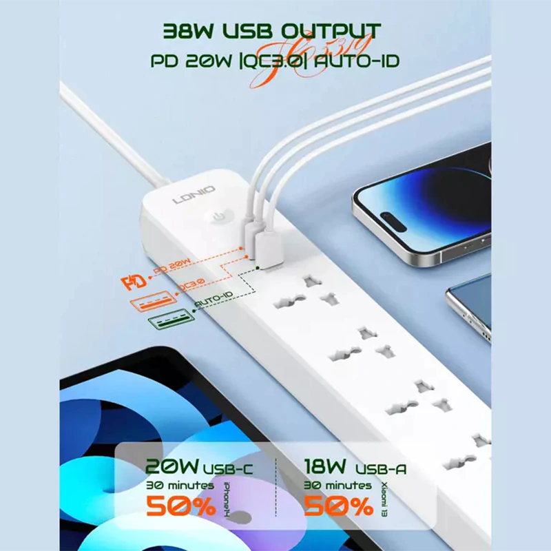 LDNIO SC5319 5 Port + 3 USB Power Socket Plug Extension Wall Charger