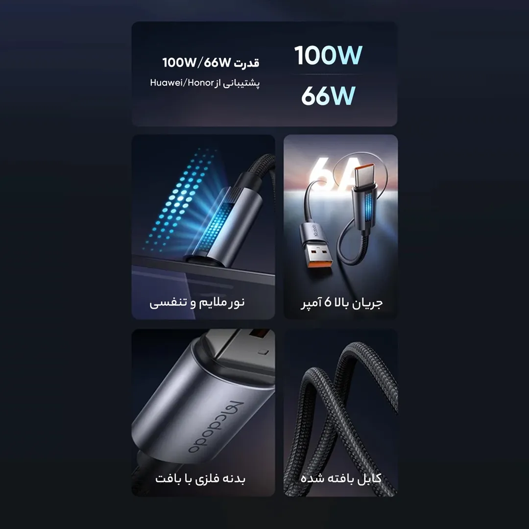 کابل شارژ تایپ سی 100 وات 6 آمپر سوپر فست مک دودو Mcdodo CA-518 طول 1.2 متر