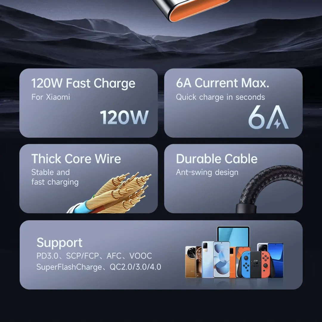 Mcdodo 120W 6A Type-C Super Fast Charge Data Cable 150CM CA-473