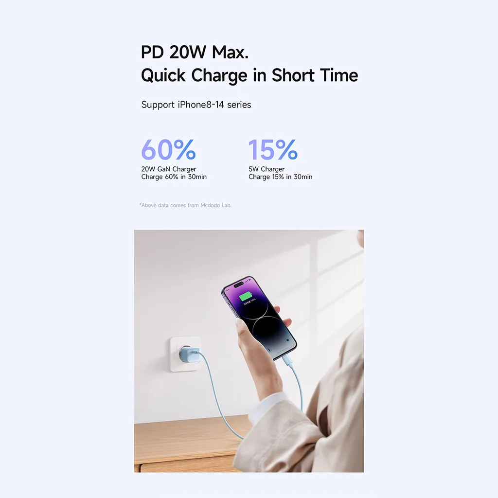 آداپتور شارژر 20 وات PD فست شارژ مک دودو Mcdodo 20W GaN PD CH-377