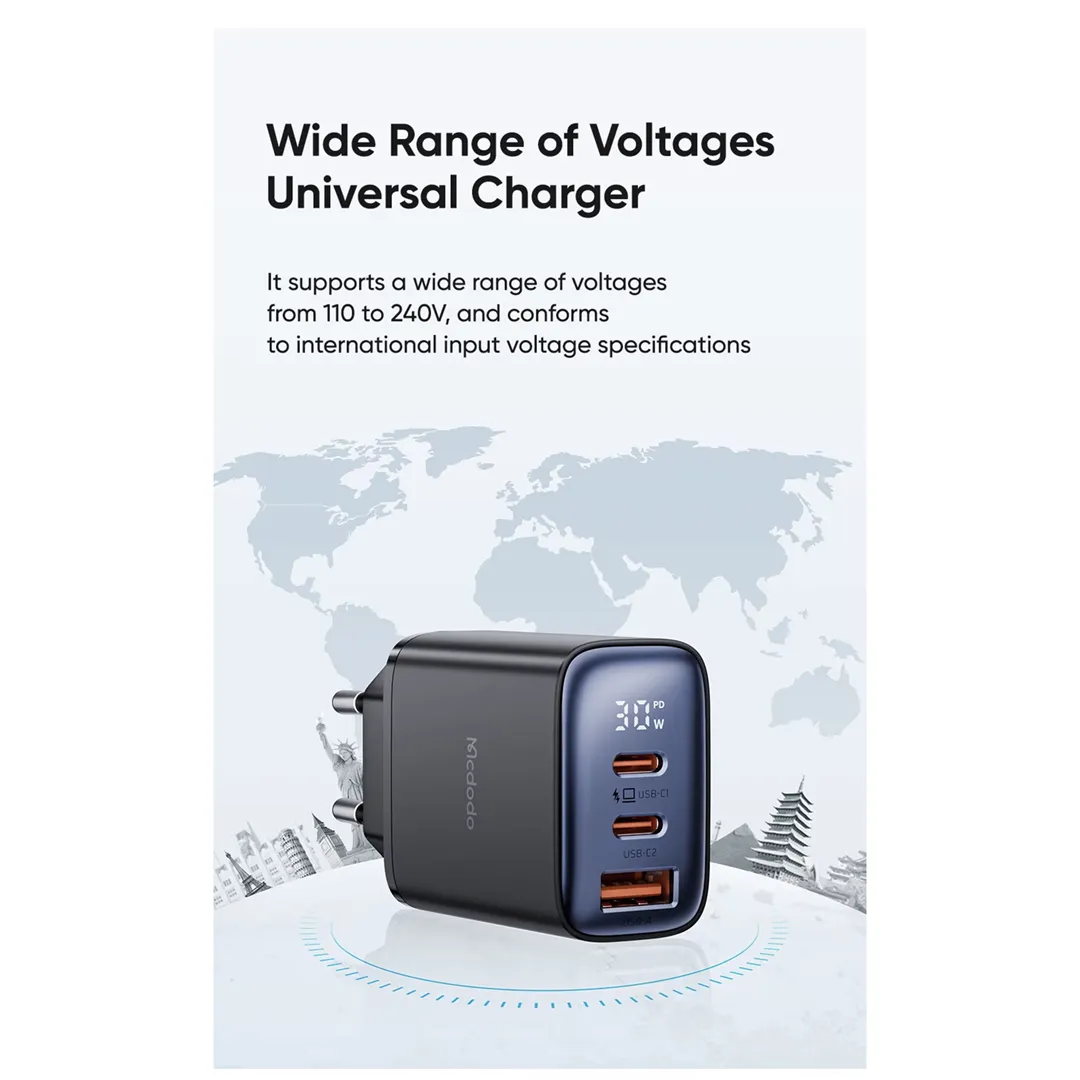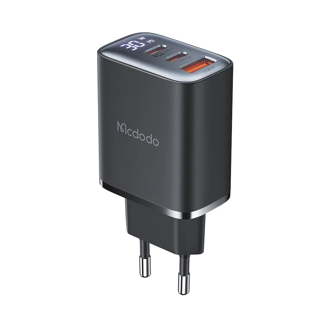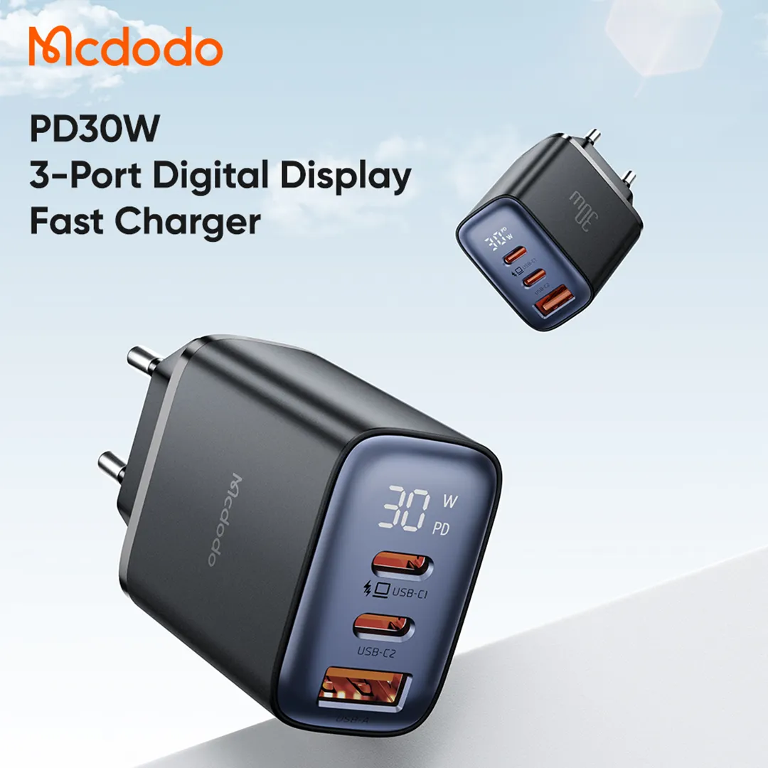Mcdodo 30W 3-Port USB-C & USB-A Digital Display Fast Charger CH-218 EU Plug 2 Pin