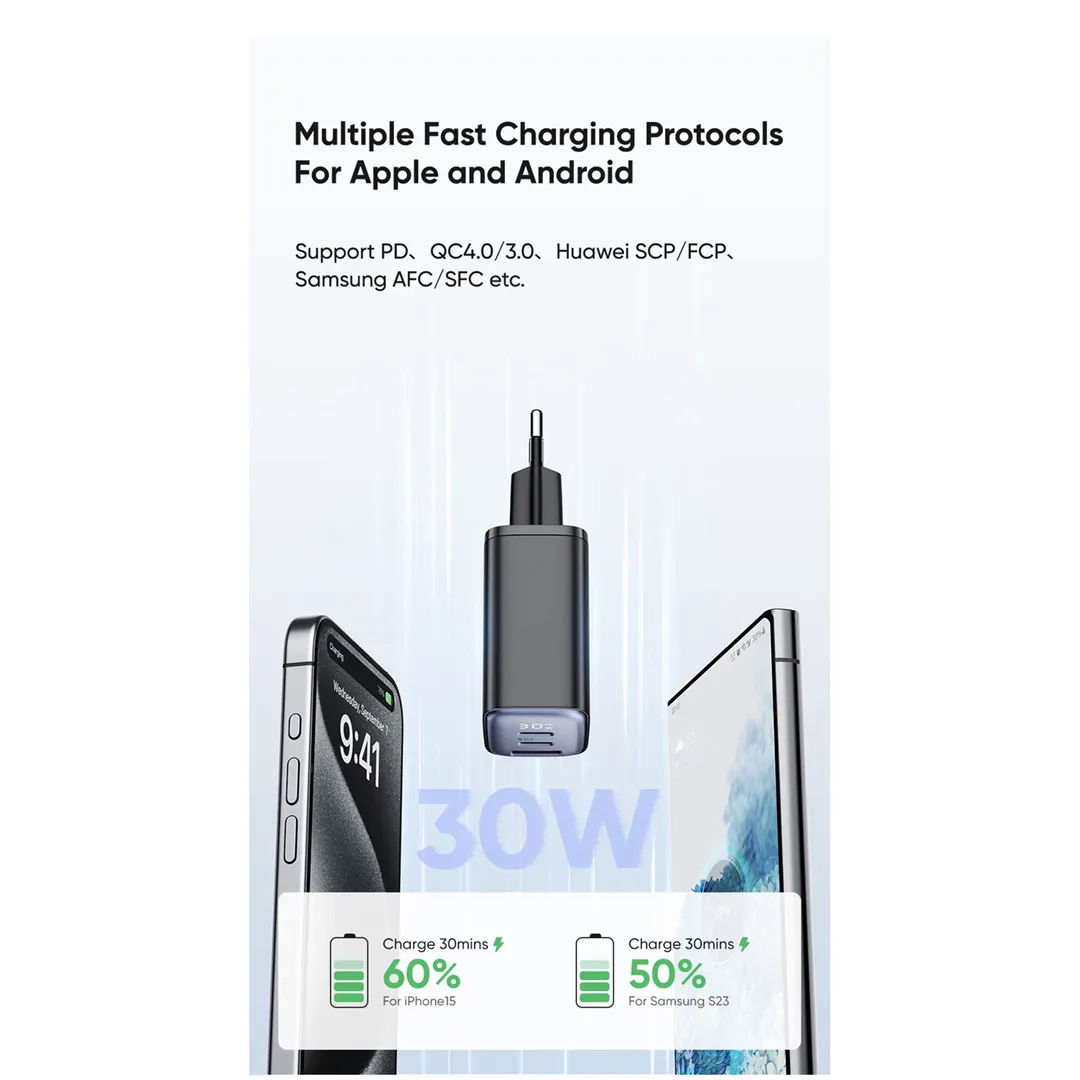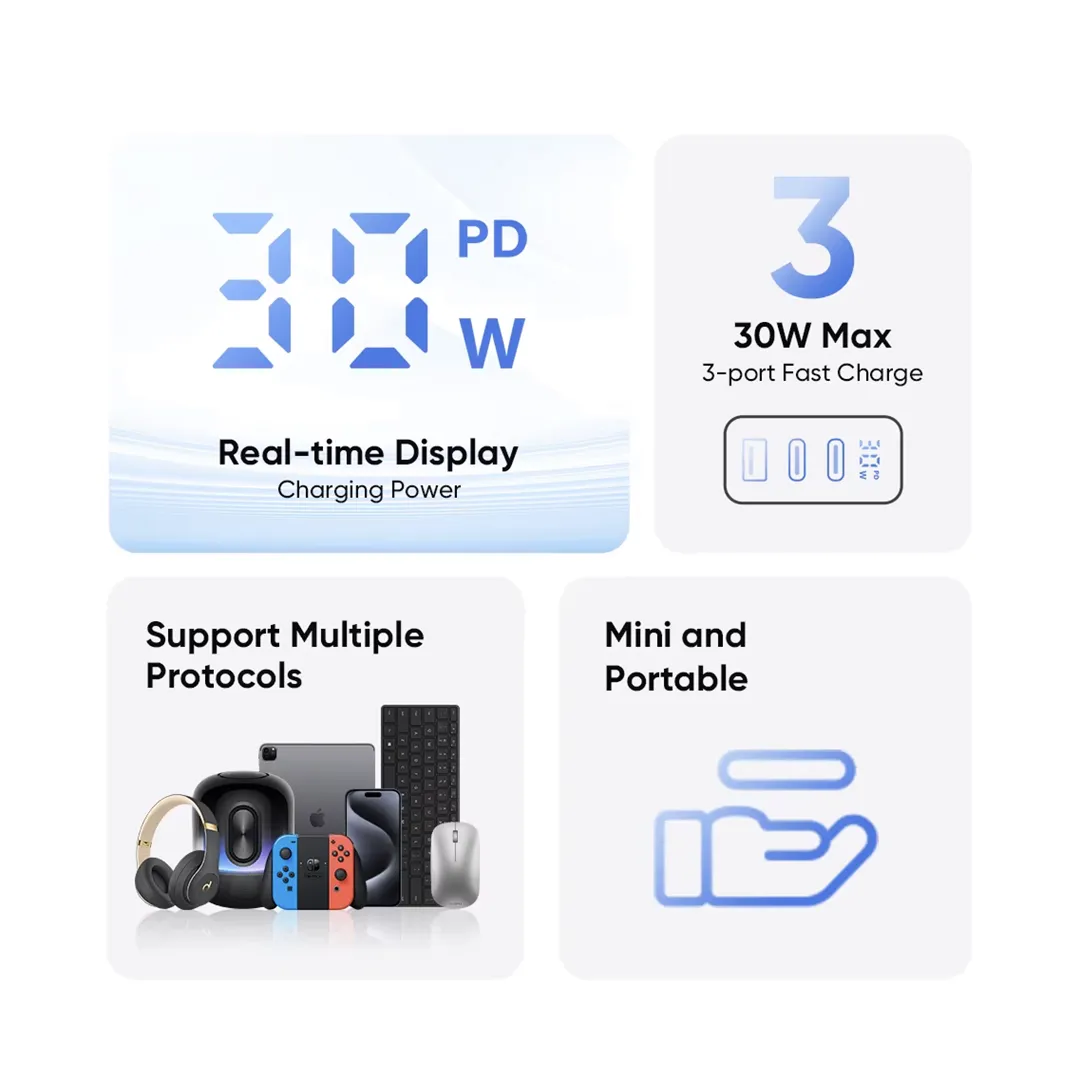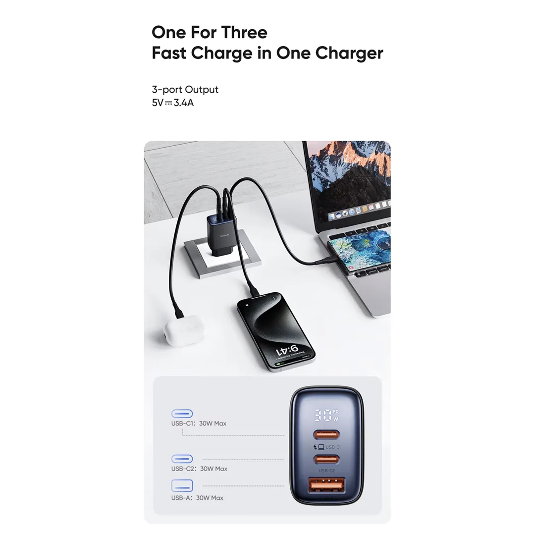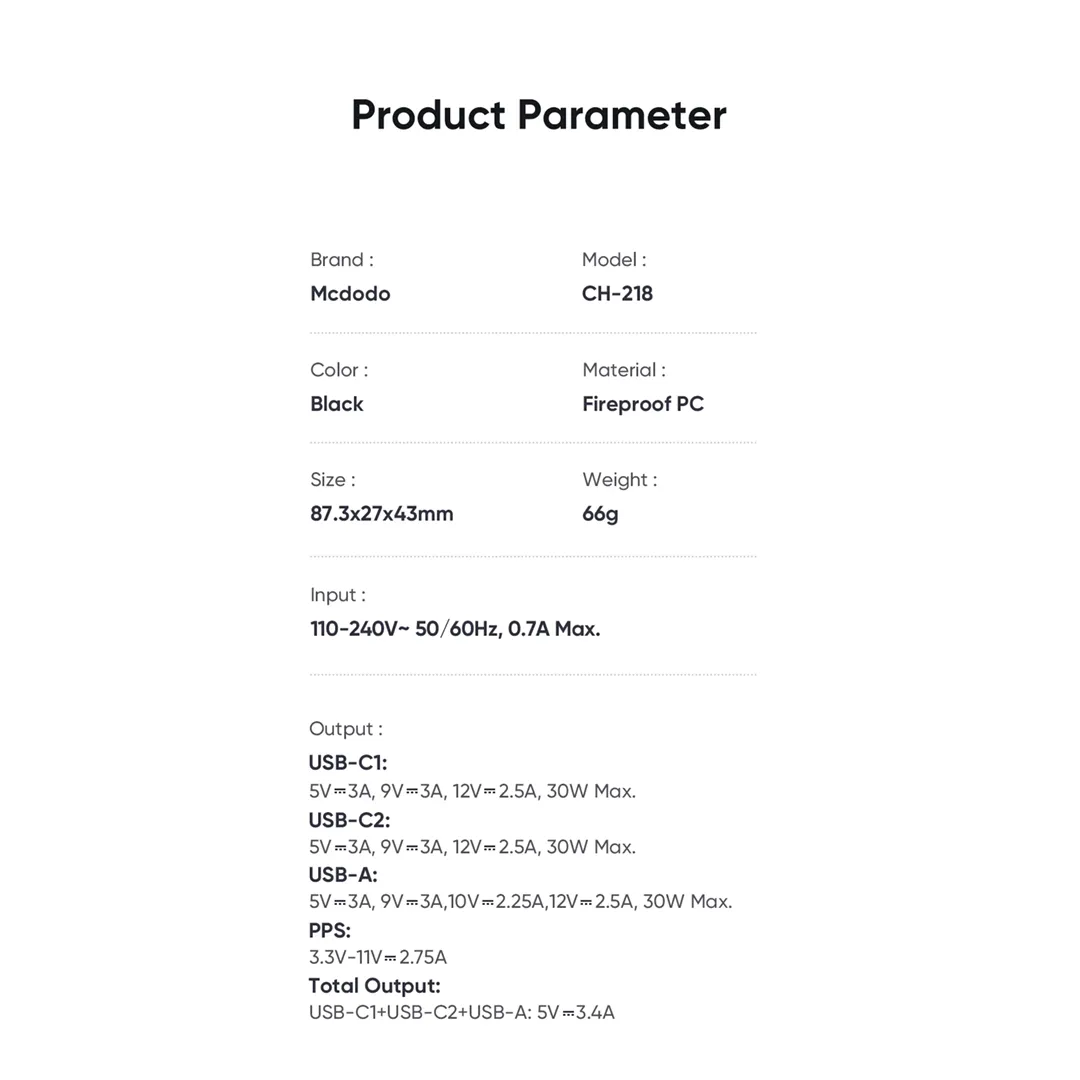 Mcdodo 30W 3-Port USB-C & USB-A Digital Display Fast Charger CH-218 EU Plug 2 Pin