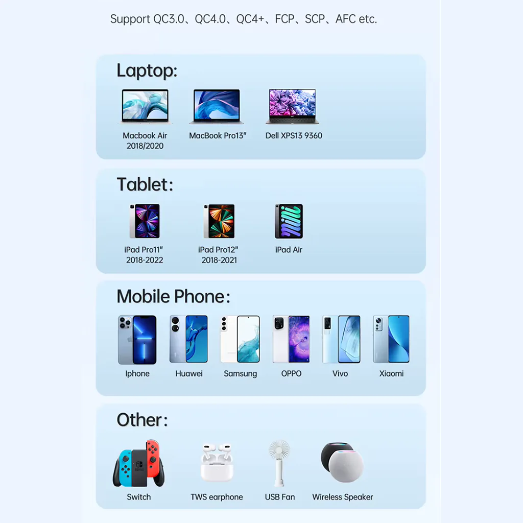 | تکنولوژی فست شارژ | PD، QC، PPS، FCP، AFC، SCP، QC4+، QC4.0، PE2.0 |