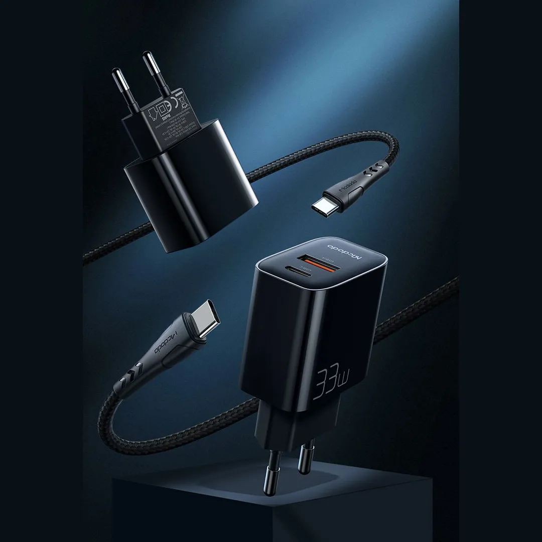 Mcdodo 33W PD Dual Output USB-C & USB-A Fast Charger Set with Type-C Cable CH-0922 EU Plug 2 Pin
