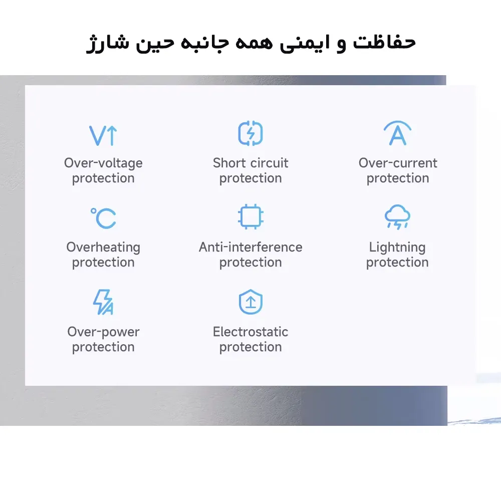 - دارای چیپست های هوشمند محافظت از باتری دستگاه در برابر نوسانات شدت جریان، ولتاژ اضافی، اتصال کوتاه و افزایش دما، انواع تداخلات، جرقه و حفاظت الكترواستاتيك