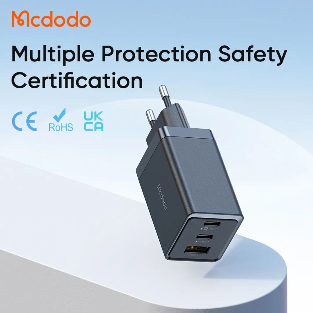 Mcdodo 70W GaN5 mini 3-Output USB-C & USB-A Fast Charger Pro CH-154 EU Plug 2 Pin