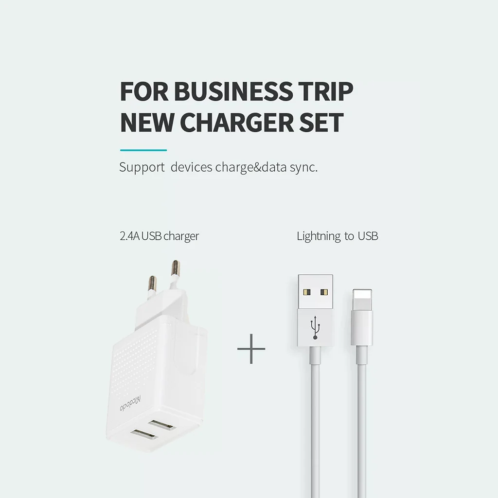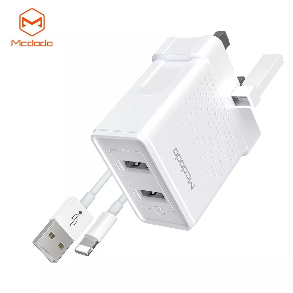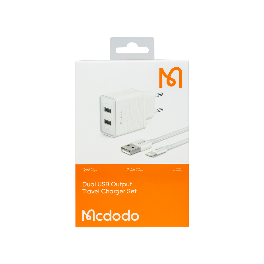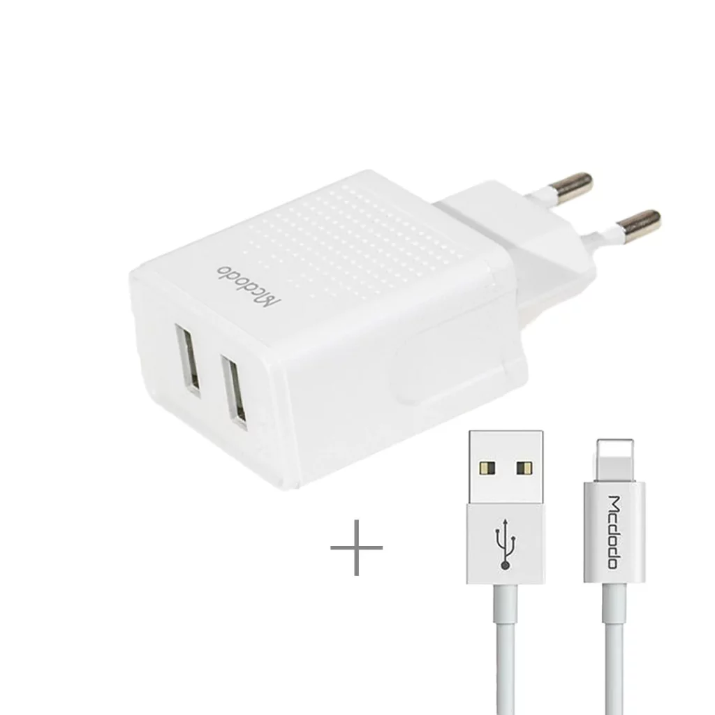 Mcdodo Dual USB-A Output 12W Travel Charger Set with Lightning Cable CH-3970 EU Plug 2 Pin
