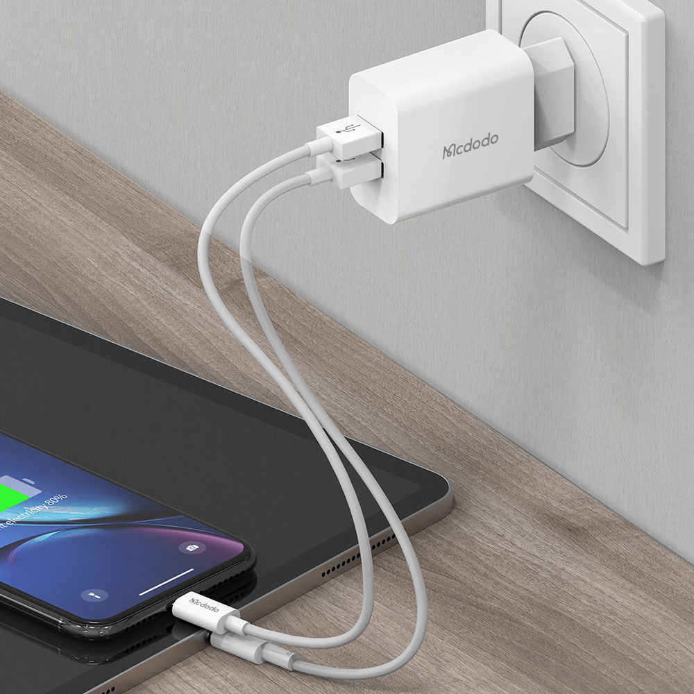 Mcdodo Dual USB-A Output Travel Charger Set with Lightning Cable CH-6720 EU Plug 2 Pin