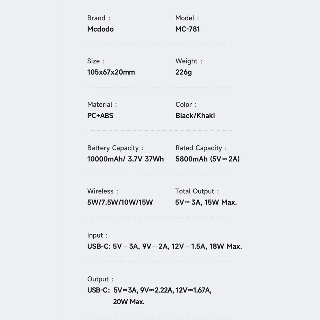 Mcdodo MagQ 30W Qi2 Magnetic Magsafe 10000 mAh MC-781 Wireless Power Bank