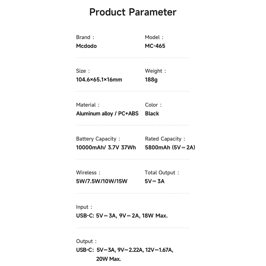 Mcdodo Metal Ultra-Thin Magnetic MagSafe Wireless 15W PD Type-C 20W 10000 mAh MC-465 Power Bank
