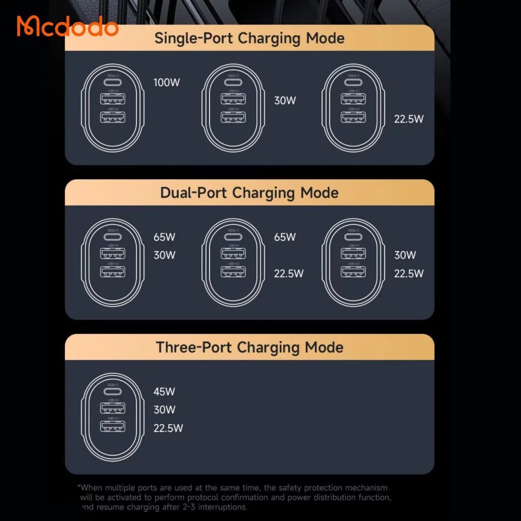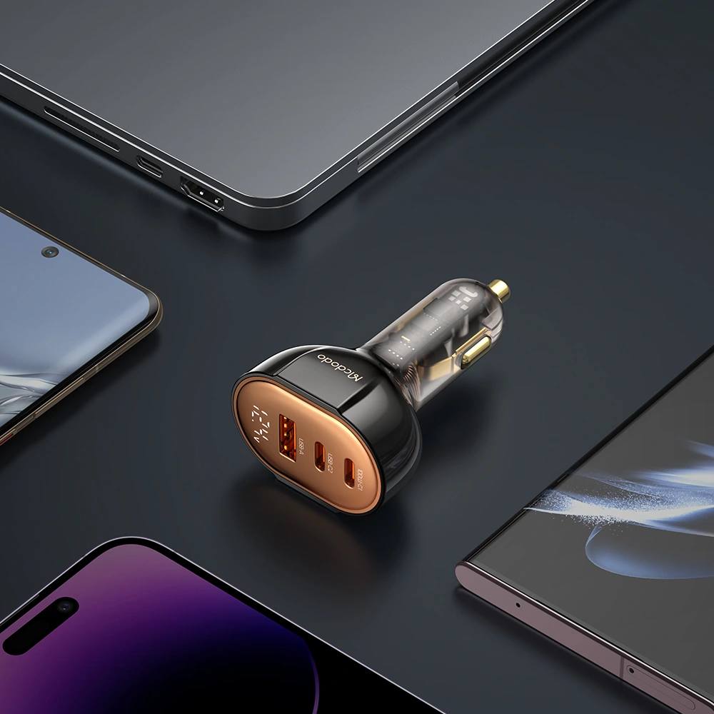 Mcdodo Prism Series 100W 3-Port Type-C & USB-A Digital Display PD Car Charger CC-2310