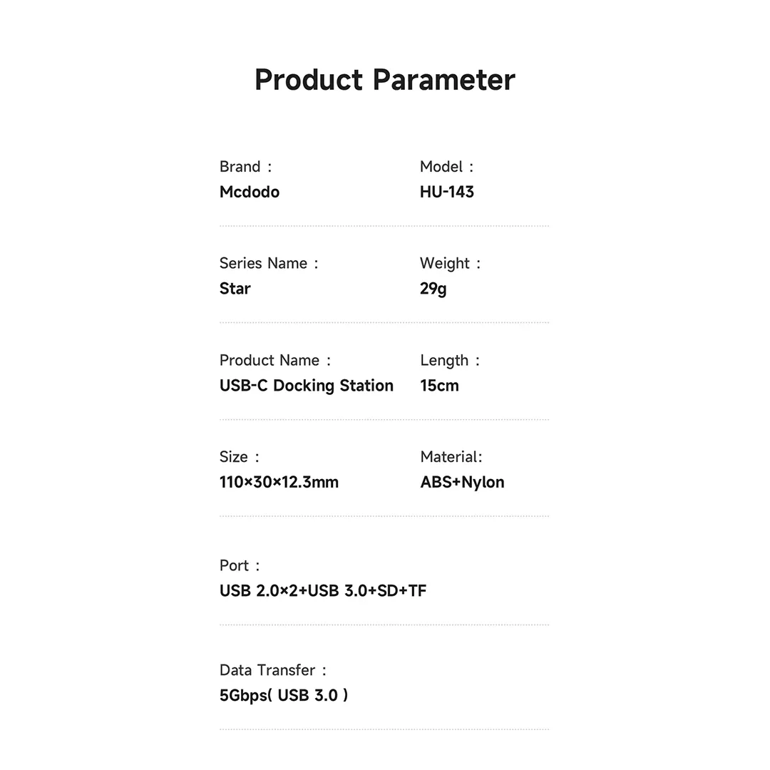 Mcdodo Star Series 5 in 1 USB-C HUB HU-143