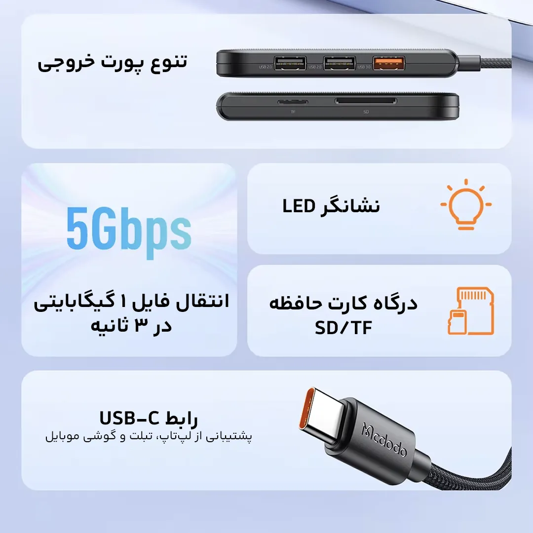 هاب 5 پورت تایپ سی مک دودو مدل Mcdodo USB-C Hub HU-143