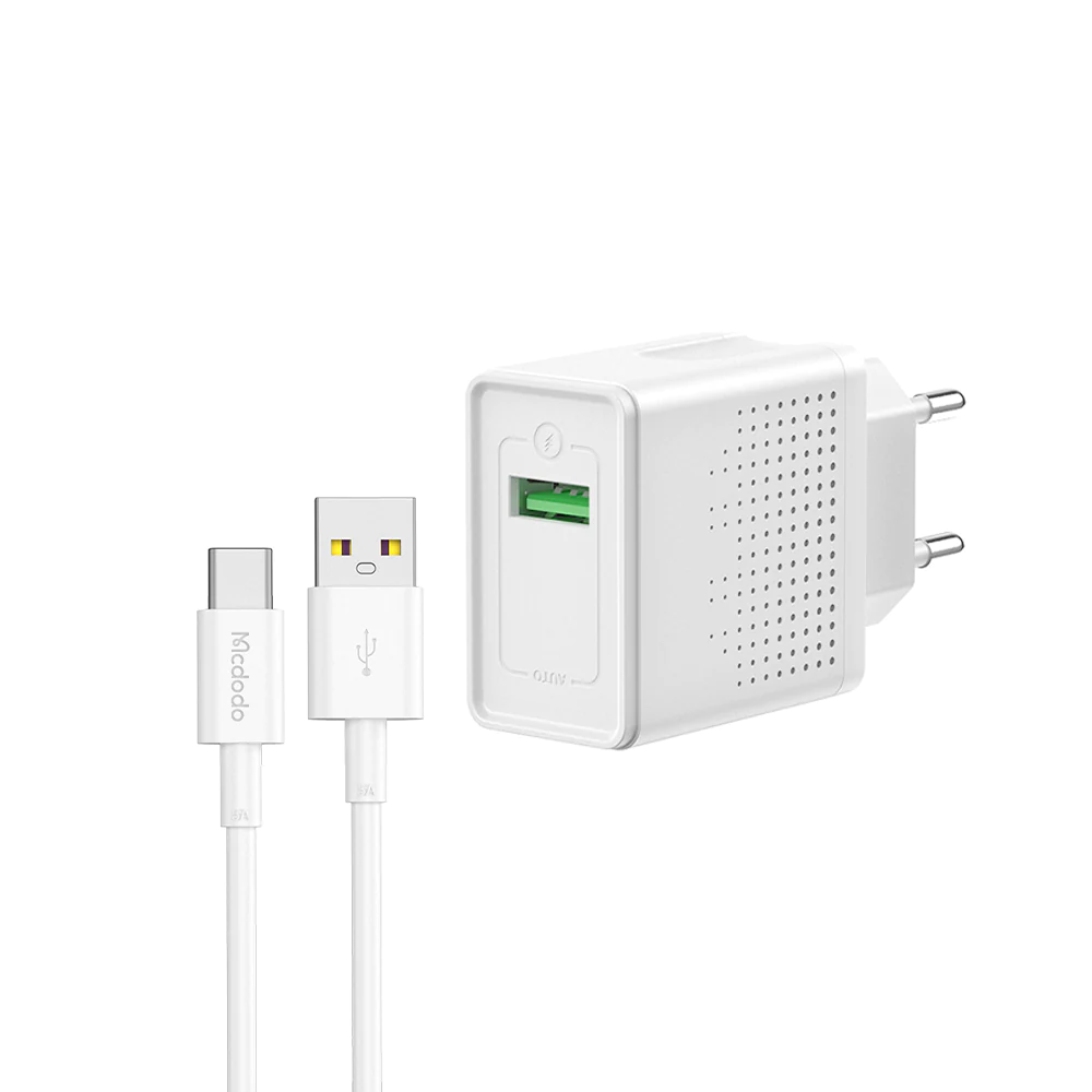 Mcdodo USB-A Output 18W QC3.0 Charger Set with Type-C Cable CH-5750 EU Plug 2 Pin