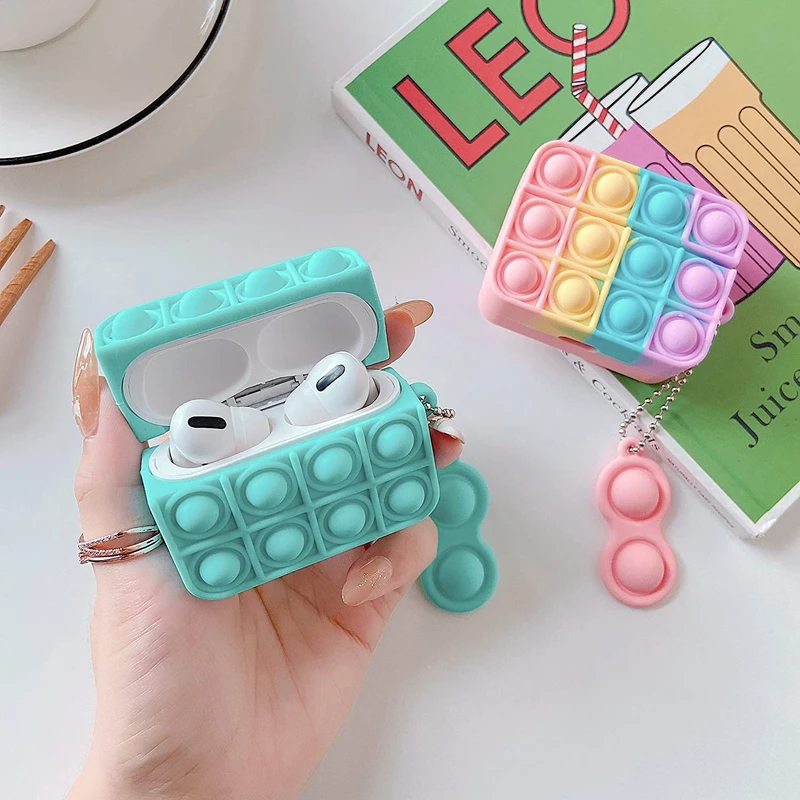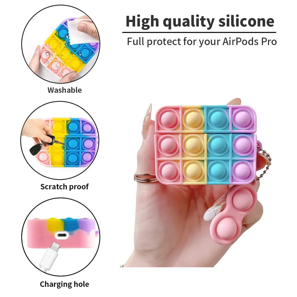 Pop It Toys Fidget Stress Silicone Protective Case For Apple AirPods 1 & AirPods 2 & AirPods Pro