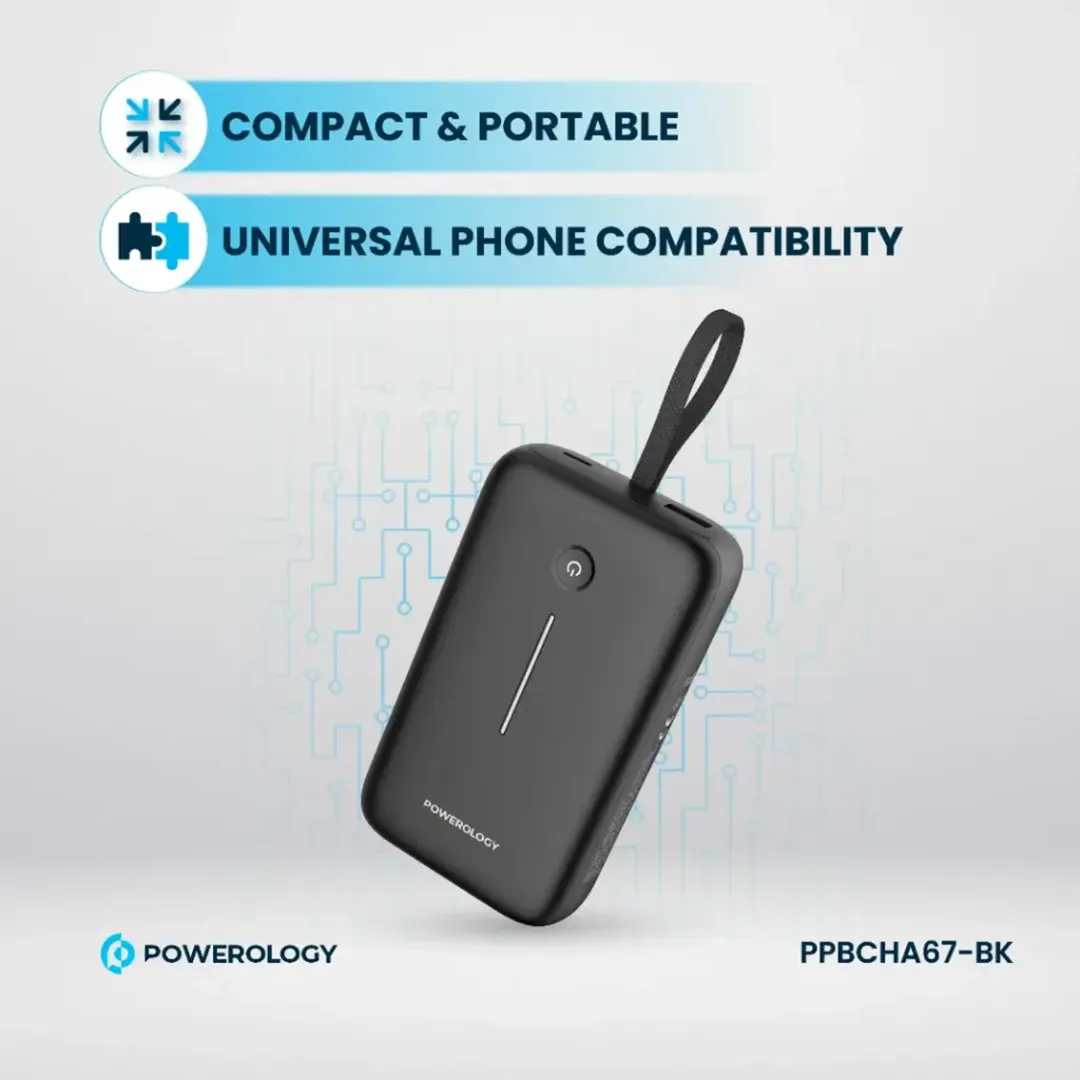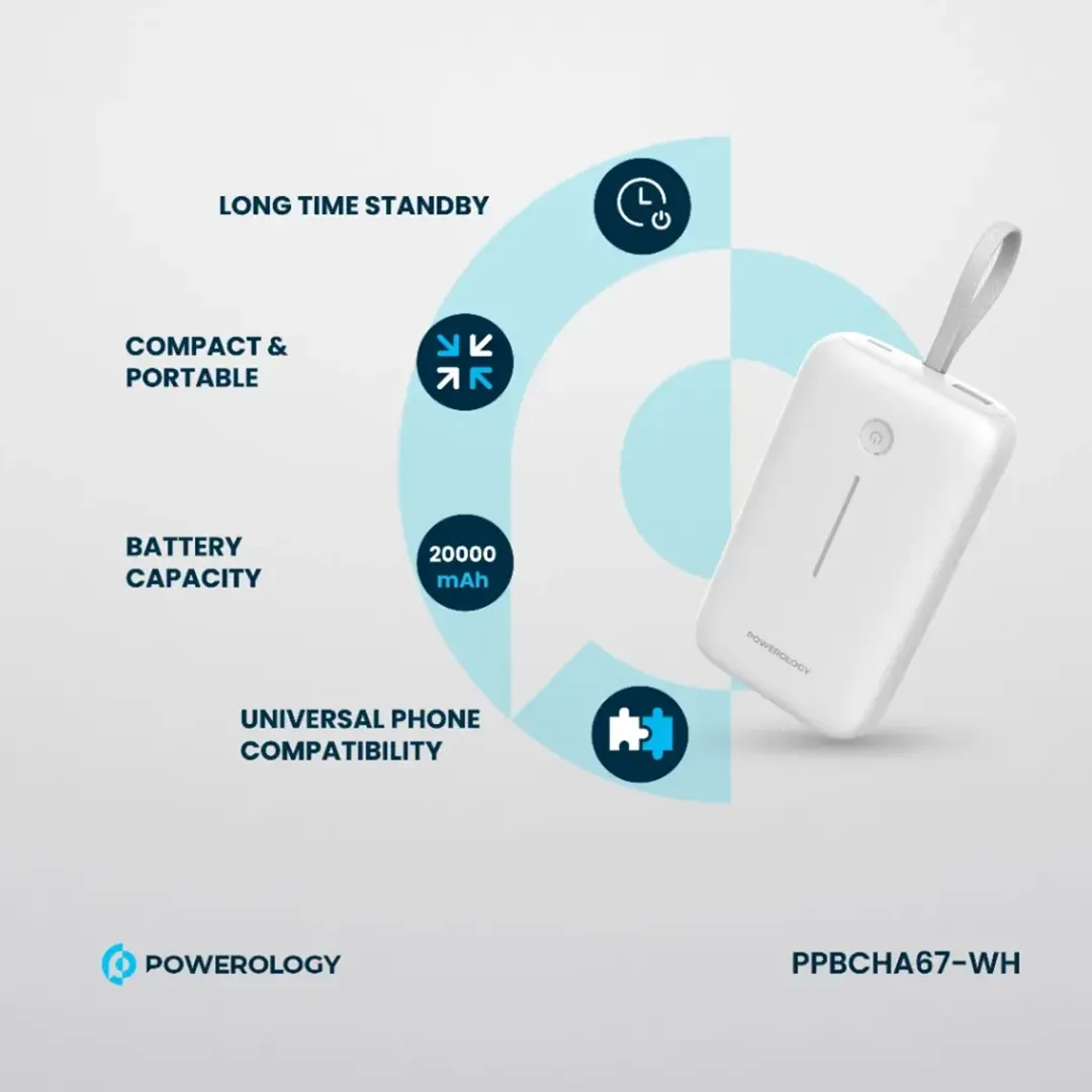 Powerology 30W PD 3 Output with Type-C Cable Power Bank, 20000mAh PPBCHA67